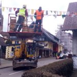 Letzten Samstag trafen sich Hästräger und Zunfträte, die unter den wachsamen Blicken vom stellv. Zunftmeister Sven Hug und Häsvogt Frank Burger die Fähnchen fachmännisch aufhängten. Zwei Teams waren fleißig: eines begann im hinteren Tal auf Höhe des Gasthauses Posthörnle, wo am Fasentmendig traditionell Umzugsaufstellung ist. Das zweite Team begann im Dorf.