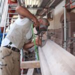 Jetzt war die Stukkateur-Firma Xhoxhaj aus Lahr an der Reihe. Es galt, die Fassade zu reinigen, lose Teile zu entfernen und Öffnungen entlang der ausgewechselten Sandsteinteile zu schließen. Nach Grundierungsarbeiten folgte der Anstrich mit einer atmungsaktiven, auf Mineralbasis aufgebauten Keimfarbe. Kleinere Risse wurden verschlämmt.