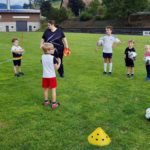 Auch in diesem Jahr hat die Jugendleiterin Jasmin Kornmayer wieder ein buntes Programm für die fußballbegeisterten Kids zusammengestellt. In der Aufwärmphase durften sie sich in Koordination, Dribbeln, Passen und Toreschießen ausprobieren, natürlich durfte auch ein kleines Wettrennen nicht fehlen. Nach der Trinkpause stand dann endlich das »richtige« Fußballspiel auf dem Programm und dabei hatten die Jungs und Mädels großen Spaß.