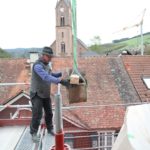 »Wir können die Abschluss arbeiten nur in Etappen voranbringen, weil nach und nach ein Teil des Mauerwerk ersetzt werden muss«, erklärt Marcel Ohnesorge, der als staatlich geprüfter Restaurator verantwortlich den Bereich Restaurierung der Oberkircher Firma »Jogerst Steintechnologie« leitet und bei dem auch die Fäden der Außensanierung des Oberharmersbacher Rathauses zusammenlaufen. Der letzte Abschnitt der Rathaussanierung werde wegen der aufwendigen Vorbereitungen vor Ort noch rund vier Wochen dauern. »Das Wetter diktiert uns dabei den Takt der Arbeiten«, gibt er zu bedenken.