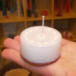 »Funzel« wurde die Werkstatt, die inzwischen rein als Hobby betrieben wird, dereinst mit einem Augenzwinkern getauft. Doch damit die Kerzen eben keine »Funzeln« darstellen, also schlecht brennen, muss der Docht bestmöglich auf die Form und das Volumen abgestimmt sein. Auch, damit möglichst viel von der Kerze verbrannt wird. Bei den derzeit angesagten Stumpenkerzen ist das weniger ein Problem.