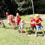 Gemäß dem Motto »Cowboy und Indianer« erwartete die Kinder im Anschluss spaßige Spiele wie Hufeisenwerfen, Bogenschießen, Cowboystiefel-Weitwurf und Tomahawk-Zielwerfen. Es wurde Gold gesiebt und beim Steckenpferd-Wettrennen galt es, die vorgegebene Strecke so schnell wie möglich zu bewältigen. Ein Highlight für viele Kinder war, dass die Kinder auf echten Pferden eine Runde im schattigen Wald drehen durften. Die Kinder, die nicht reiten wollten, tobten sich in der Zeit auf dem weitläufigen Spielplatz aus oder machten in der bewirteten Hütte eine Pause. Für das leibliche Wohl war bestens gesorgt.