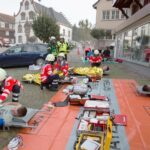 Fünf Personen mit Platzwunden, Frakturen sowie Rauchgasvergiftungen wurden über die Drehleiter sicher geborgen, ebenso wie vier traumatisierte Personen. Wie immer hatten Mitglieder der Jugendwehr diese Rolle übernommen. In sicherem Abstand zum angenommenen Brandobjekt war eine Erstversorgungsstation eingerichtet, wo sich neun Rotkreuzhelfer mit der Vorsitzenden Elvira Schilli und Bereitschaftsleiter Julian Schilli um die verschiedenen Verletzungen und die Betreuung kümmerten.