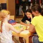 Im Foyer der Reichstalhalle stand schon alles bereit, als die Kinder und ihre Begleitungen ein trafen. Nach einer kurzen Kennenlernrunde in Form eines Ballspiels konnte jeder spielen, was er wollte. Es gab diverse Karten- und Brettspiele, aber auch Reifen, Bälle, Gummi-twist und ein Wikingerschach auf dem Vorplatz der Tourist-Info.