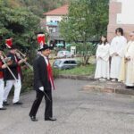 In traditioneller Weise beteiligten sich die historischen Vereine Spielmannszug und Bürgerwehr, sowie die Miliz- und Trachtenkapelle an dem kirchlichen Fest. Mit klingendem Spiel zogen sie zusammen mit Pfarrer Gerner und den Ministranten zum Festgottesdienst um 9 Uhr in die Kirche ein.