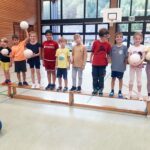 Eine andere Aufgabe war es, einen Slalom-Parcour unter 20 Sekunden zu absolvieren. Hierbei sollte der Ball auf dem Schläger balanciert werden. Bei diesen Übungen geht es hauptsächlich darum, das Ballgefühl und die Koordination zu verbessern und die Kinder somit auf das Spiel an der Tischtennisplatte vorzubereiten.