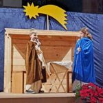 Gestaltet wurde er vom Erstkommunion-Team rund um Stephanie Kasper, Kathrin, Martina, Nicole und Tanja Lehmann sowie Mathilde Zimmermann und den Kommunionkindern 2024. Sehr viel Liebe zum Detail steckte unter anderem in der Auswahl der Lieder, die von Nicole Lehmann an Querflöte und Gitarre und einem kleinen Chor begleitet wurden, der Darstellung des „Wunders von Weihnachten“ in einem Krippenspiel, das die Kommunionkinder gekonnt mit Leben füllten und den anderen Gottesdienstinhalten, die von Diakon Matthias Hoppe angeleitet wurden.