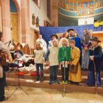 Für großen Applaus und strahlende Gesichter sorgte das diesjährige Kommunionlied „Farbigkeit steckt an“, das die Erstkommunikanten im Anschluss an das Krippenspiel mit viel Schwung und Freude zum Besten gaben. „Gott in meinem Herzen, hautnah, himmelweit, öffne mir die Augen für dein buntes Kleid“ lautet der Refrain des fünfstrophigen Songs, der so manchem Besucher noch den ganzen Abend lang als Ohrwurm erhalten blieb.