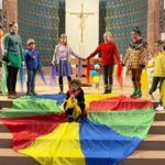 Diakon Matthias Hoppe und Zunftmeister Claus Franke begrüßten freudig alle kleinen und großen Narren. Es wurde gebetet, Kommunion gefeiert, gesungen und geklatscht. Zudem haben die Junghästräger den Gottesdienst wieder fleißig mit vorbereitet und gemeinsam mit Kathrin Lehmann als Erzählerin die „Geschichte vom Streit der Farben“ aufgeführt. Hier behauptete jede Farbe von sich, die schönste und beste Farbe von allen zu sein. Erst als es gewitterte, rückten alle Farben zusammen und ließen sich vom Regen belehren, dass jede Farbe wunderbar und einzigartig ist. Daraufhin fassen sich die Farben an den Händen und spannen einen farbigen Bogen um die Sonne. Gemeinsam schaffen sie so etwas Einzigartiges. Diese Geschichte sollte jedem verdeutlichen, dass, wenn man die Farben des Regenbogens sieht, Gott einen liebt und jeder wichtig und ein Teil von Gottes bunter Welt ist. Gemeinsam kann man in Frieden miteinander leben und leuchten wie der Regenbogen am Himmel.