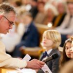 Kommunionkinder haben den Gottesdienst durch die Auswahl der Lieder, das Verfassen von Gebeten und das Verschönern des Altars mit einem bunten Bild eines Regenbogens mitgestaltet.