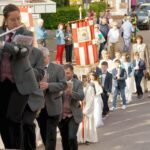Angeführt wurde der feierliche Zug von der Miliz- und Trachtenkapelle, die den Prozessionsmarsch von August Dreher anklingen ließ und damit für eine ganz besondere Stimmung bei den in der Kirche wartenden Eltern und Familien der Kommunionkinder und den zahlreich erschienenen weiteren Gemeindemitgliedern sorgte.