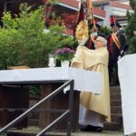 Der Himmel zeigte sich Wolkenverhangen und regnerisch, doch pünktlich zu Beginn der Feierlichkeiten ließ der Regen nach, sodass auch die Prozession im Anschluss an den Gottesdienst in gewohnter Weise stattfinden konnte.