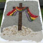Die Kommunionkinder und zahlreiche Helferinnen und Helfer waren bereits am Vortag fleißig dabei, die zahlreichen Blumenteppiche zu legen. Leider haben sie jedes Jahr weniger Blumen zur Verfügung, sodass sie notgedrungen auf andere Materialien zur Ausgestaltung der Bilder ausweichen müssen. Trotz dieser Umstände haben sie wunderschöne Motive gelegt, was von den zahlreichen Besuchern und Besucherinnen wohlwollend zur Kenntnis genommen wurde.