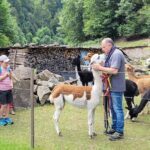 Da der geplante Sommerausflug im Juni buchstäblich ins Wasser fiel, wurde dieser am Freitag, 26. Juli, nachgeholt. Mit 21 Kindern startete man um 15.30 Uhr von Oberharmersbach nach Nordrach ins Moosbachtal zu Waldemar Neumayer und seinen Alpakas. Nach einer kurzen Einführung in den Umgang mit den Tieren wurden die zehn Alpakas angeleint und namentlich vorgestellt. Je ein oder zwei Kinder führten ein Alpaka auf der zweistündigen Wanderung. Die Route führte entlang des Moosbächles bis zur Rabenfelsenhütte und weiter bergauf, wobei die Alpakas ständig nach Futter suchten. Die Kinder hatten die Gelegenheit, die flauschigen Tiere zu streicheln und mit ihnen zu kuscheln. Unterwegs wurde getauscht, sodass alle Kinder einmal Alpaka-Führer sein konnten.