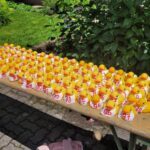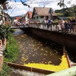 Aufgrund der starken Strömung wurde keine Zeit verplempert und so sausten die Enten in Windeseile Richtung Ziellinie, begleitet von vielen Kindern, die nebenher rennen mussten, um nicht abgehängt zu werden. Die ersten 95 im Ziel angekommenen und mit dem Sieb herausgefischten Enten erhielten eine Nummer umgehängt, sodass jede dem „Besitzer“ ihres Loses einen tollen Gewinn ergatterte.