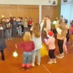 Außerdem schauten die Kinder beim Erzähltheater (Kamishibai) „Sterntaler“ aufmerksam zu und zu dem Lied „Blinke, blinke kleiner Stern“ gab es einen Sternentanz. Dabei nahm jedes Kind seinen mitgebrachten Stern und gemeinsam wurde getanzt. Hier waren viele verschiedene Sterne zu sehen. Zum Schluss wurde noch gemeinsam das Vater unser gebetet.