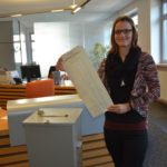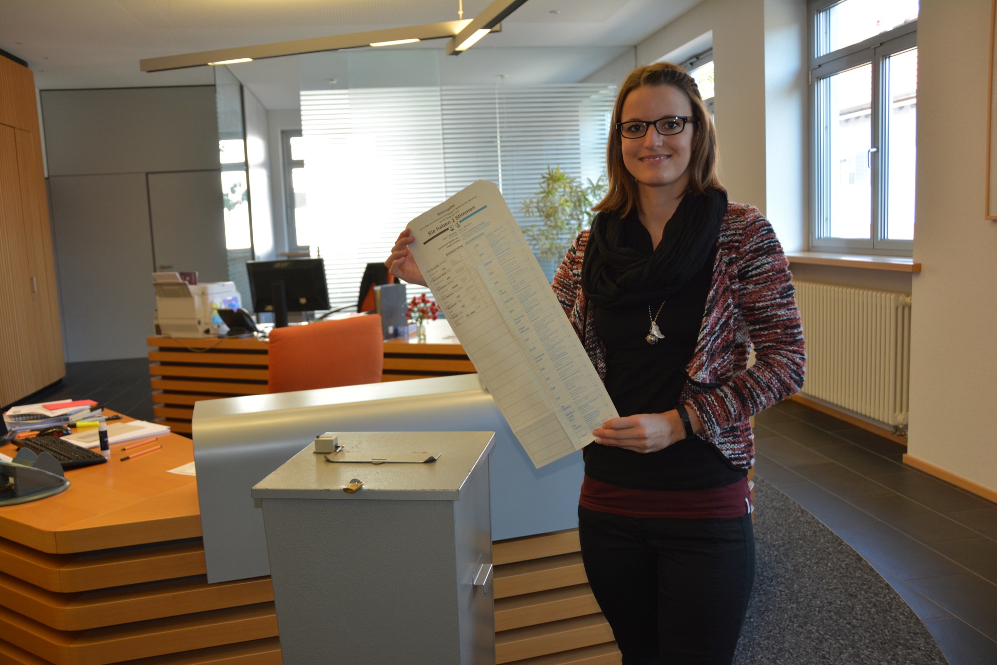 »Wer den amtlichen Stimmzettel zum ersten Mal sieht, braucht sich übrigens nicht zu wundern, dass die obere rechte Ecke des Stimmzettels abgeschnitten ist. Dies dient Sehbehinderten dazu, den Stimmzettel ohne fremde Hilfe in die sogenannte Blindenschablone einlegen zu können«, erklärt Lasch. Damit wird gewährleistet, dass Sehbehinderte vollkommen selbstständig ihr Wahlrecht ausüben können.