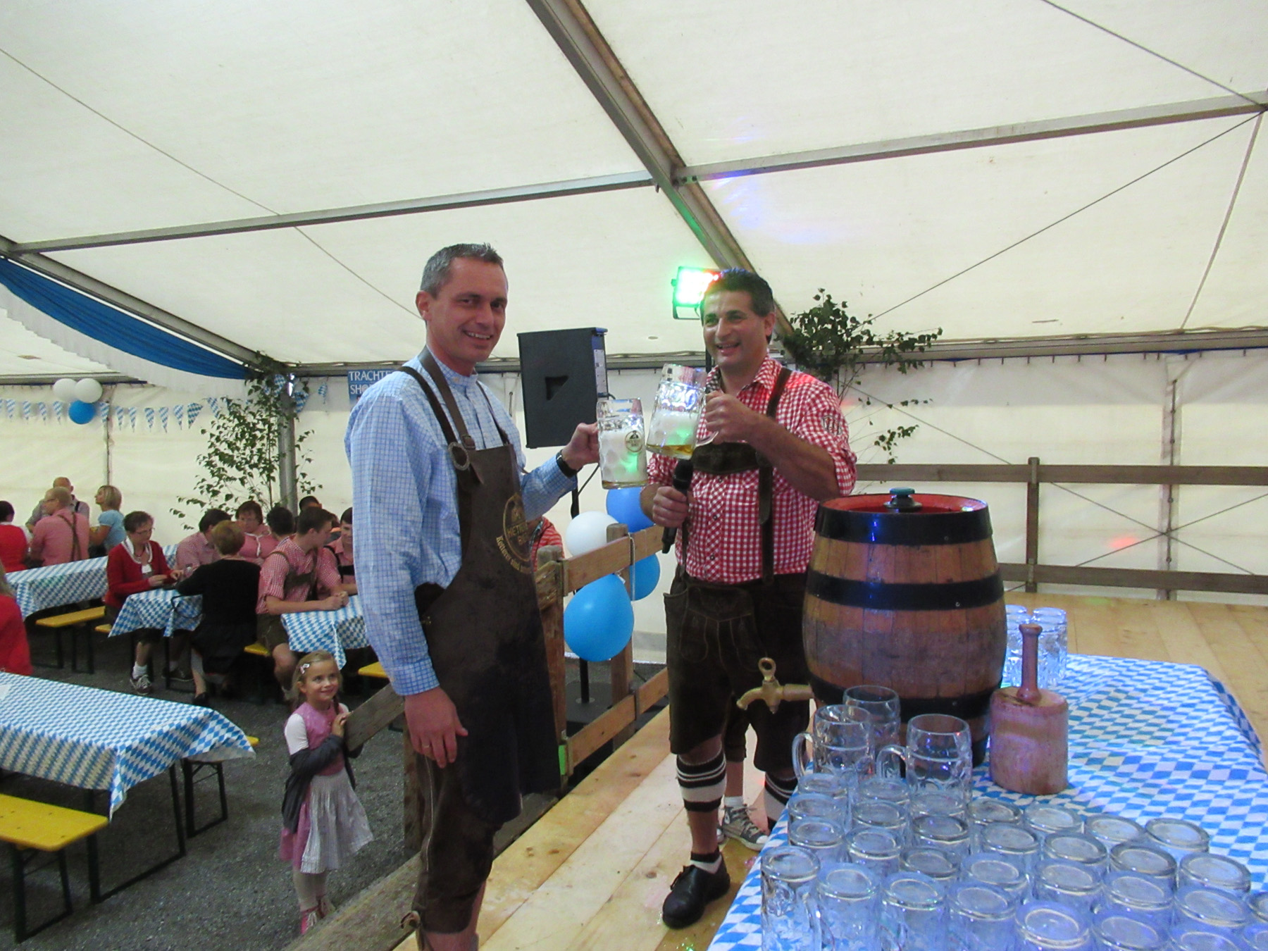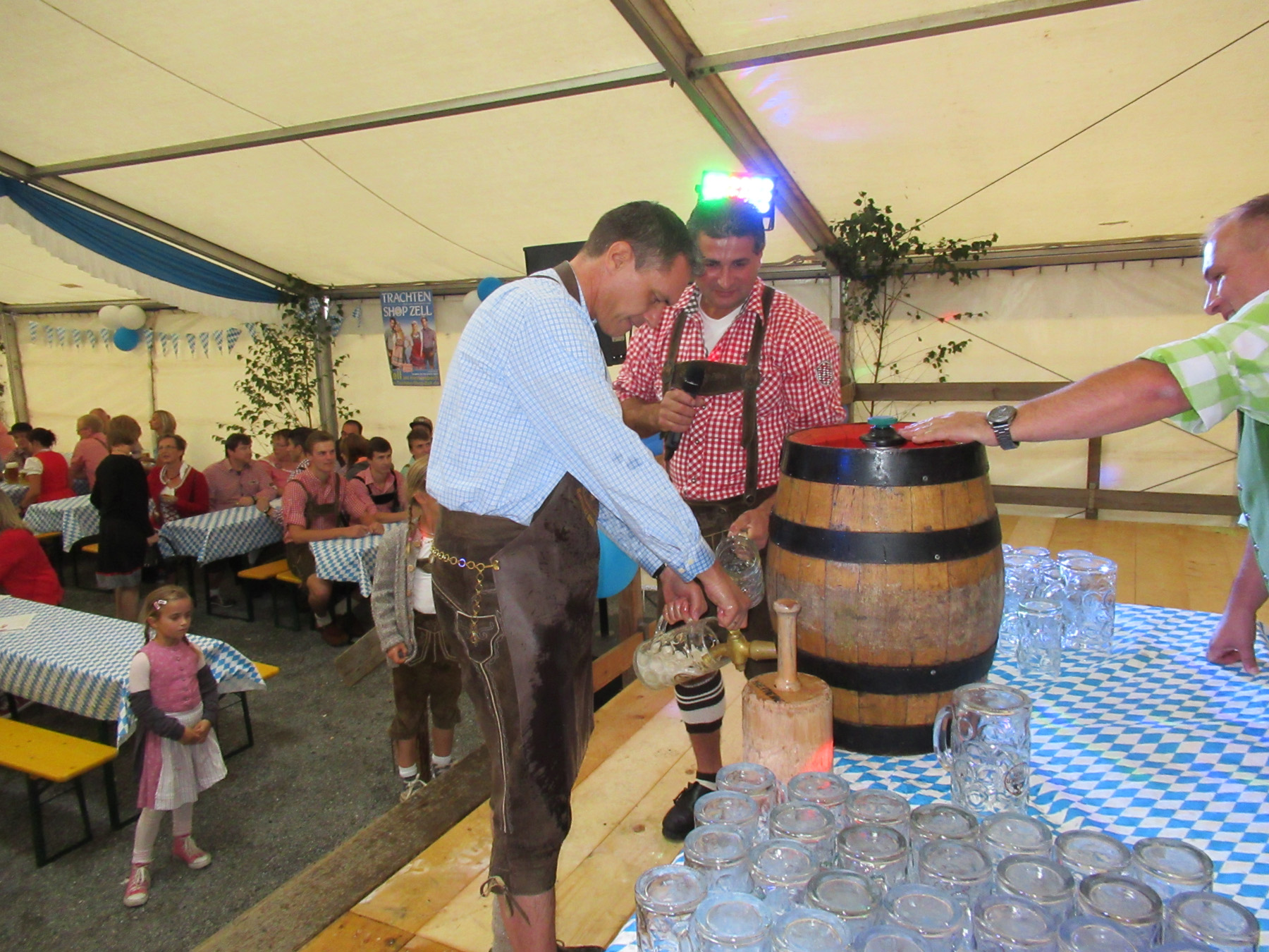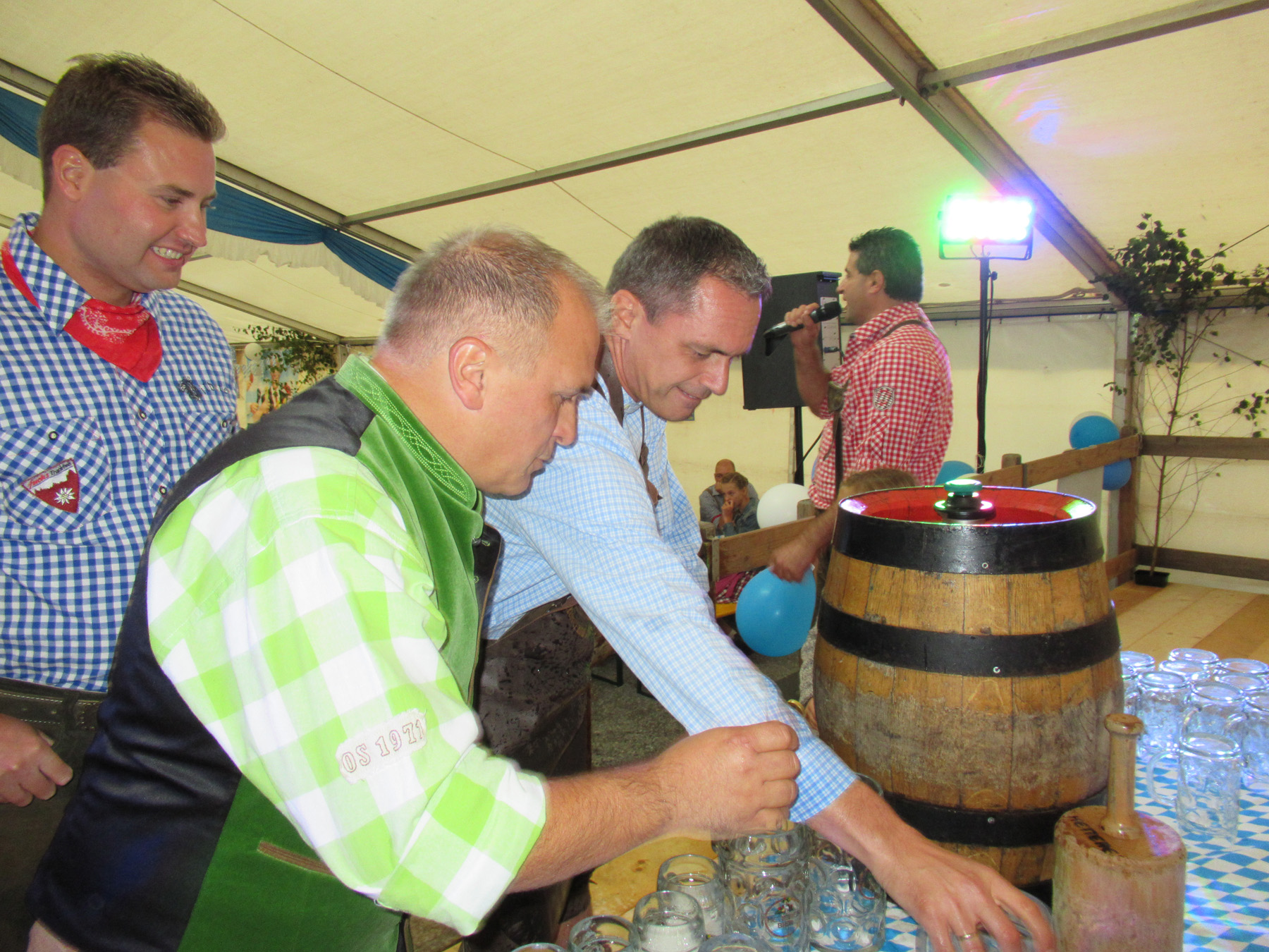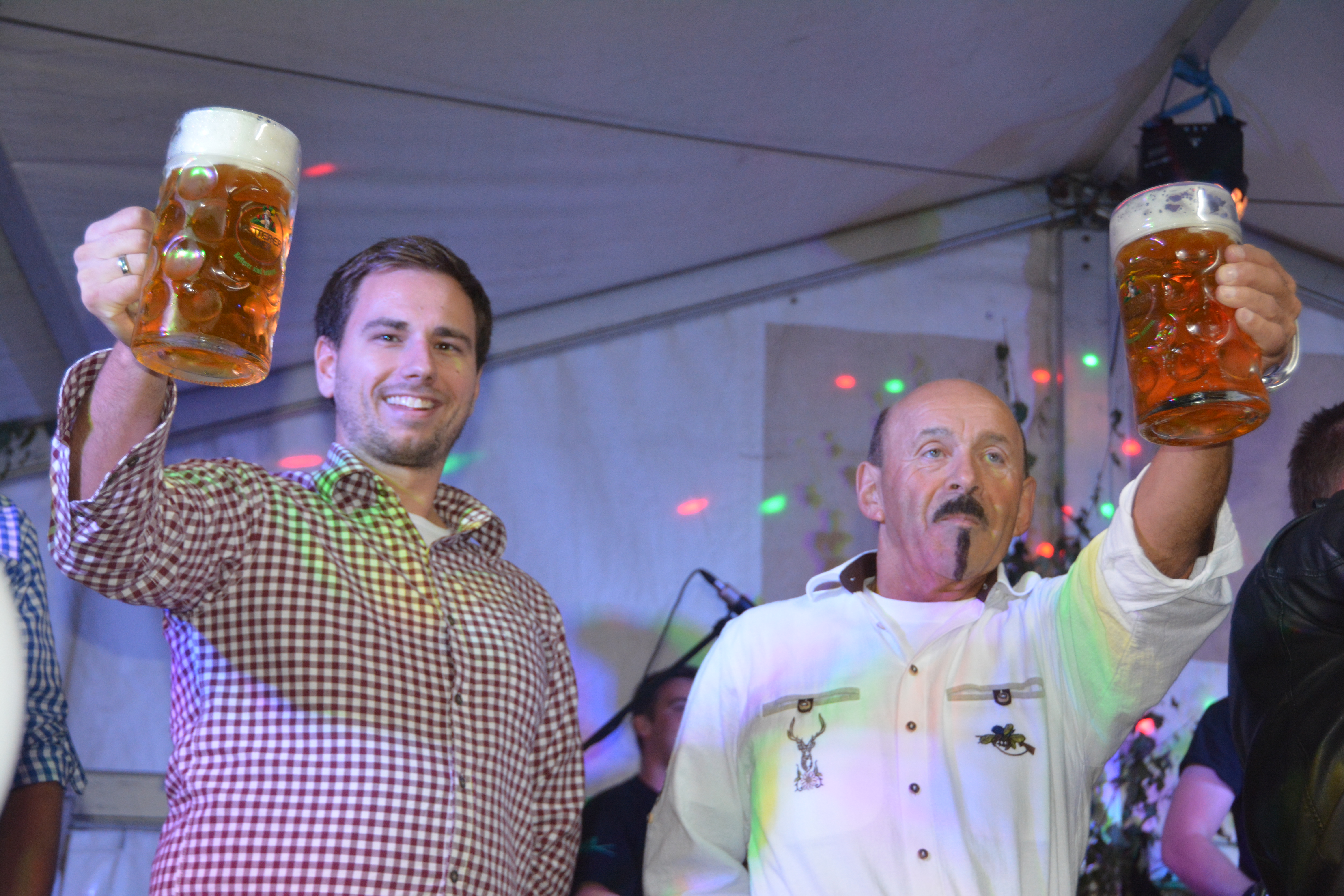Kein geringerer als Bürgermeister Günter Pfundstein zapfte am Samstagabend gekonnt mit vier Schlägen das erste Fass Oktoberfestbier an und eröffnete damit offiziell das Festwochenende. Danach ergriffen Entertainer Felix Huber und eine Gaudi-Edition die Riege und brachten die Gäste im voll besetzten Festzelt so richtig in Schwung. Auf den Bierbänken und auf dem Tanzboden wurde gefeiert, getanzt und gesungen.