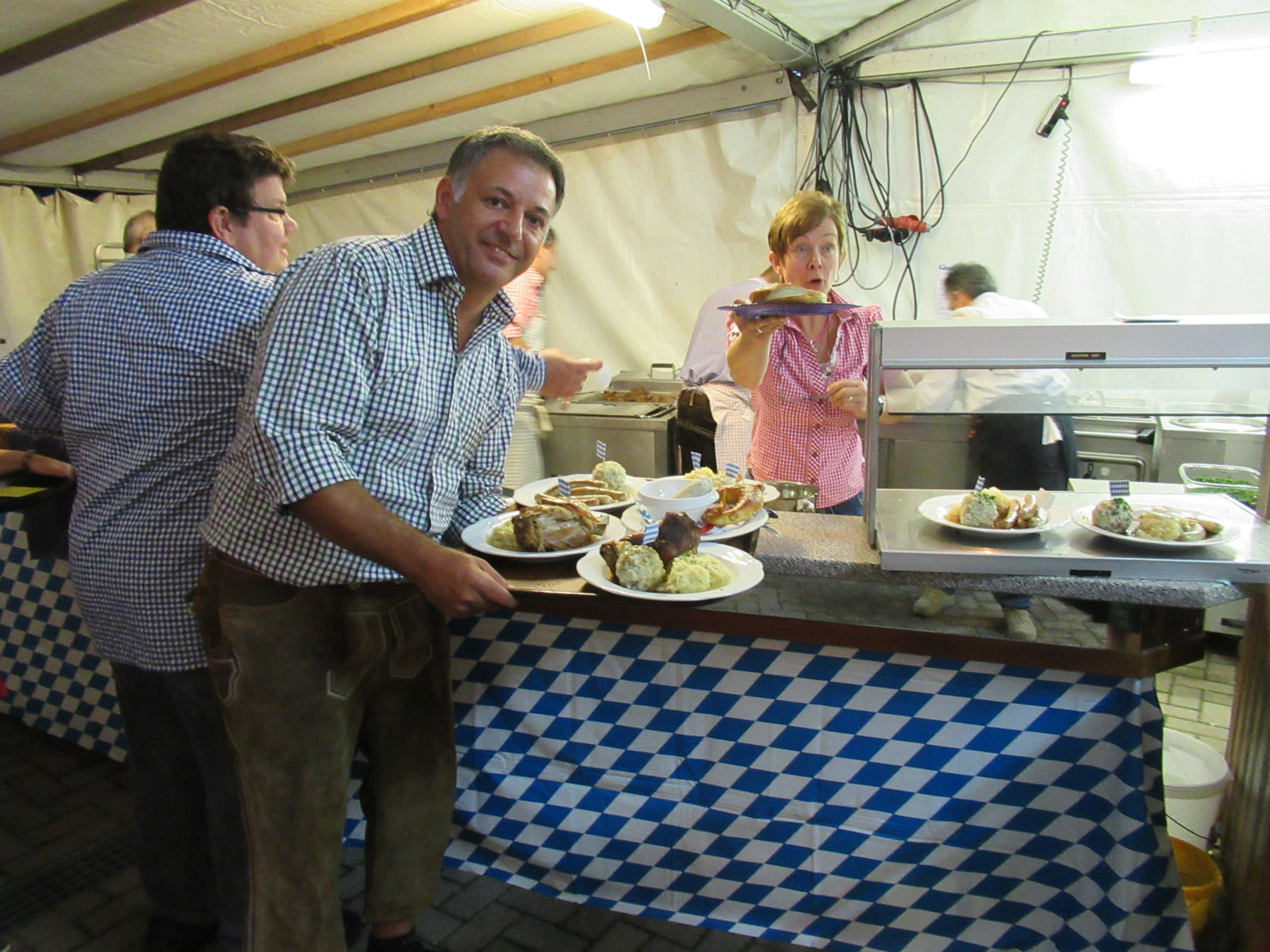Stilecht in Lederhosen und Dirndl präsentierte sich auch das Helferteam der Metzgerei Damm.