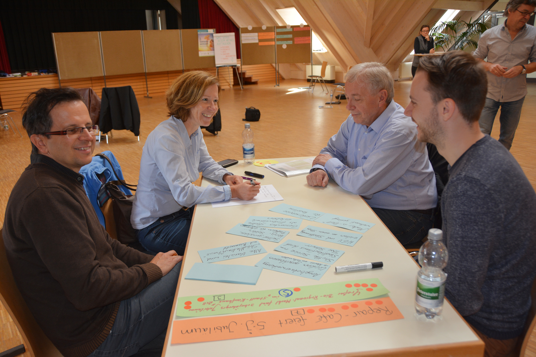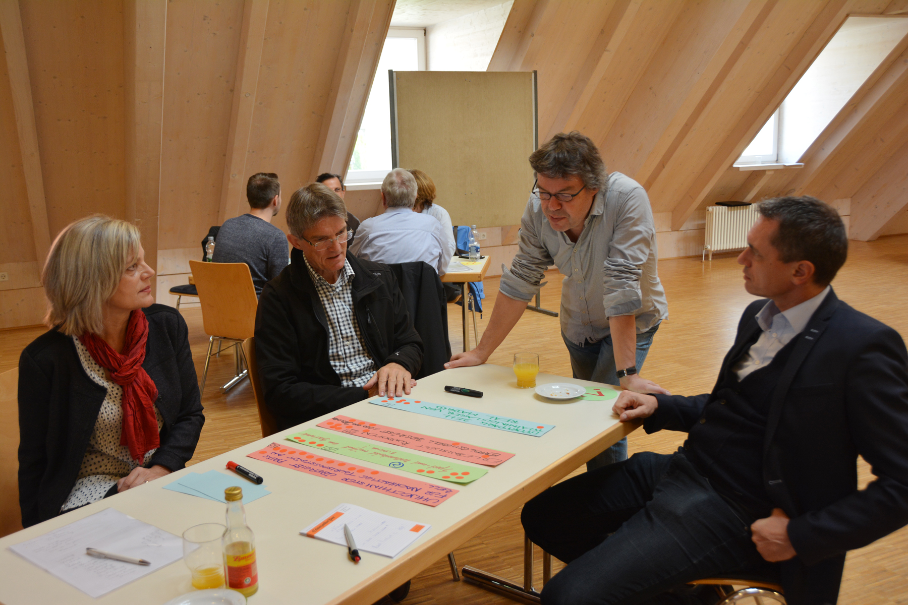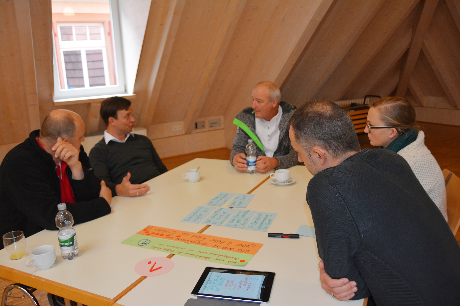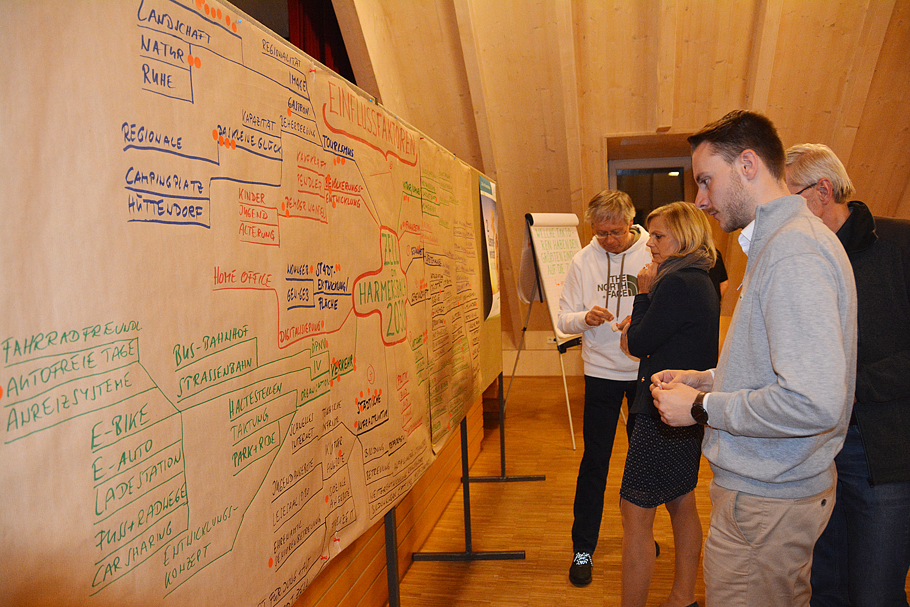 Aus der Vielzahl von Nennungen mussten die Teilnehmer dann mit jeweils fünf Klebepunkten darüber abstimmen, welche Ideen sie als besonders Zukunftsrelevant für Zell erachten. Daraus entwickelten sich fünf Themenschwerpunkte, zu denen im zweiten Teil der Szenariowerkstatt zunächst Überschriften und dann auch Berichte ausgearbeitet wurden, wie sie im Jahr 2030 in der Presse stehen könnten.