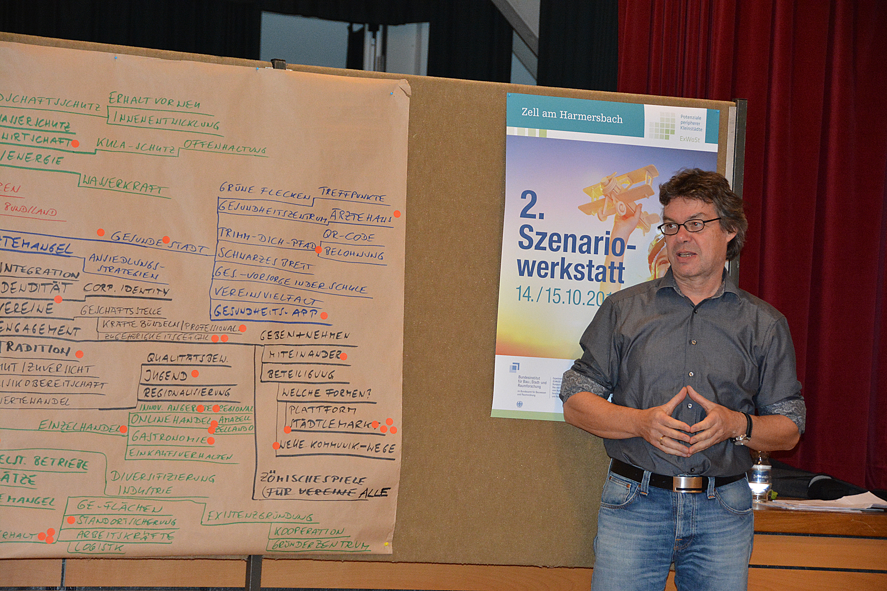 »Die Szenarien sind nichts Ausschließliches sondern können jeweils für sich Teil einer großen Gesamtstory sein«, betonte Professor Dr. Peter Dehne, der das bundesweite Forschungsprojekt »Potenziale von Kleinstädten in peripheren Lagen« leitet. Gemeinsam mit Dr. Jens Hoffmann und Heidrun Hiller von der Hochschule Neubrandenburg war er zur zweiten Szenario-Werkstatt nach Zell gekommen, die am Freitag und Samstag im Dorfgemeinschaftshaus Unterentersbach durchgeführt wurde. Nach dem Start am 16. und 17. März mit der »Szenariowerkstatt 1« sowie der großen Bürgerversammlung am 10. Juni war dies nun der nächste Schritt, um ein Zukunftsbild für Zell am Harmersbach zu entwerfen.