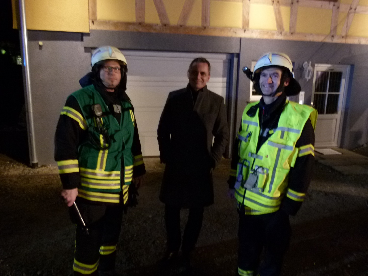Stellvertretender Kommandant Philipp Schilli als Übungsbeobachter sowie Torsten Wiucha als Zugführer gaben den Kameraden nach der Übung einen kurzen Überblick über die getroffenen Maßnahmen und die Arbeiten direkt an der Einsatzstelle. Bürgermeister Pfundstein bedankte sich bei allen Beteiligten, welche an dieser Alarmübung teilgenommen hatten. »Wir können uns auf unsere Hilfsorganisationen verlassen. Dass nach sieben bis acht Minuten über 50 Einsatzkräfte vor Ort waren, ist schon beeindruckend.«