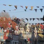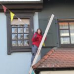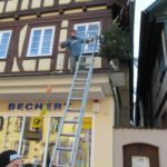 Hinter dieser Aktion steht eine Menge Arbeit. Auf der großen und den vier kleinen Kabeltrommeln befanden sich 5.000 Meter, an einem Seil befestigte Wimpel. Das Abrollen bedeutete keine Schwierigkeiten, nur das Anbringen an den Häusern. Mit großen Leitern wurde angerückt und derjenige oder diejenige musste schwindelfrei sein, um die Sprossen hochzuklettern. Unter den Narroträgern gibt es jedoch seit langem so einige »Füchse«, die dies mit Leichtigkeit schafften.