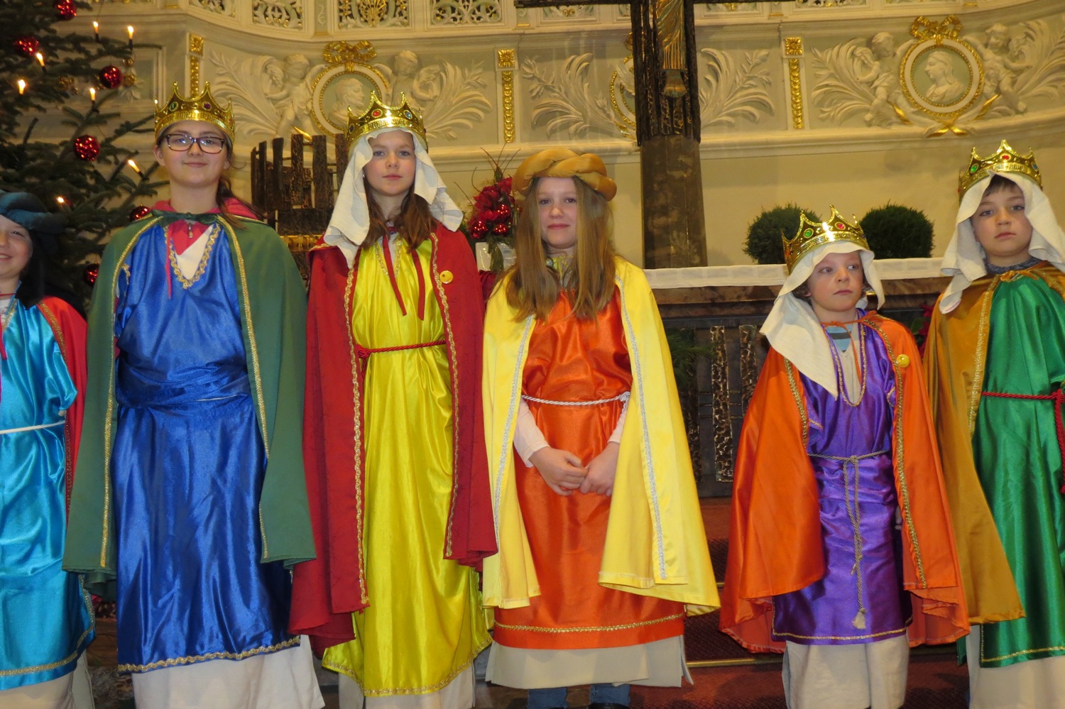 Die Mädchen und Jungen in ihren prächtigen Gewändern mit goldfarbenen Kronen und Sternen gaben ein farbenfrohes Bild im Altarraum ab. Bruder Pirmin erklärte zu dem Brauch des Dreikönigssingens: »Die Sternsinger sollen Licht in die Gemeinde bringen, Gottes Segen und gute Wünsche für das kommende Jahr.«