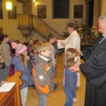 Bethlehem; gemeinsam gehen sie dorthin und finden Jesus als kleines Kind im Stall. Gespannt verfolgten die vielen Kinder in der Kirche diese schöne Geschichte, die als Anspiel im Altarraum und vor der Krippe in der Pfarrkirche gestaltet wird.
