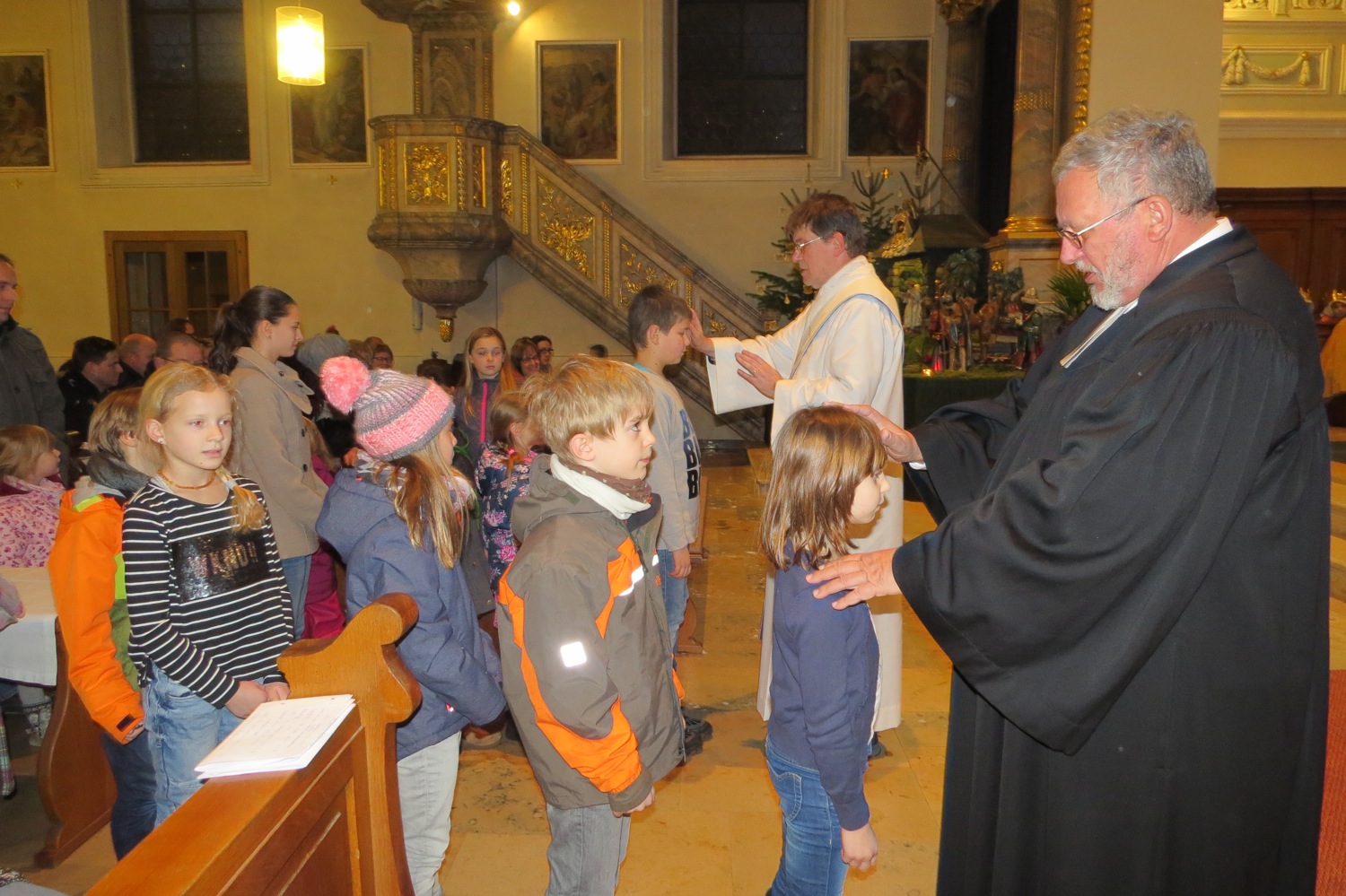 Der schöne Brauch der ökumenischen Kindersegnung am Neujahrstag hat in der katholischen Kirchengemeinde Tradition. Die Kinder kamen nach vorne und erhielten von Bruder Pirmin oder von Prädikant Zurbrügg einen persönlichen Segen.