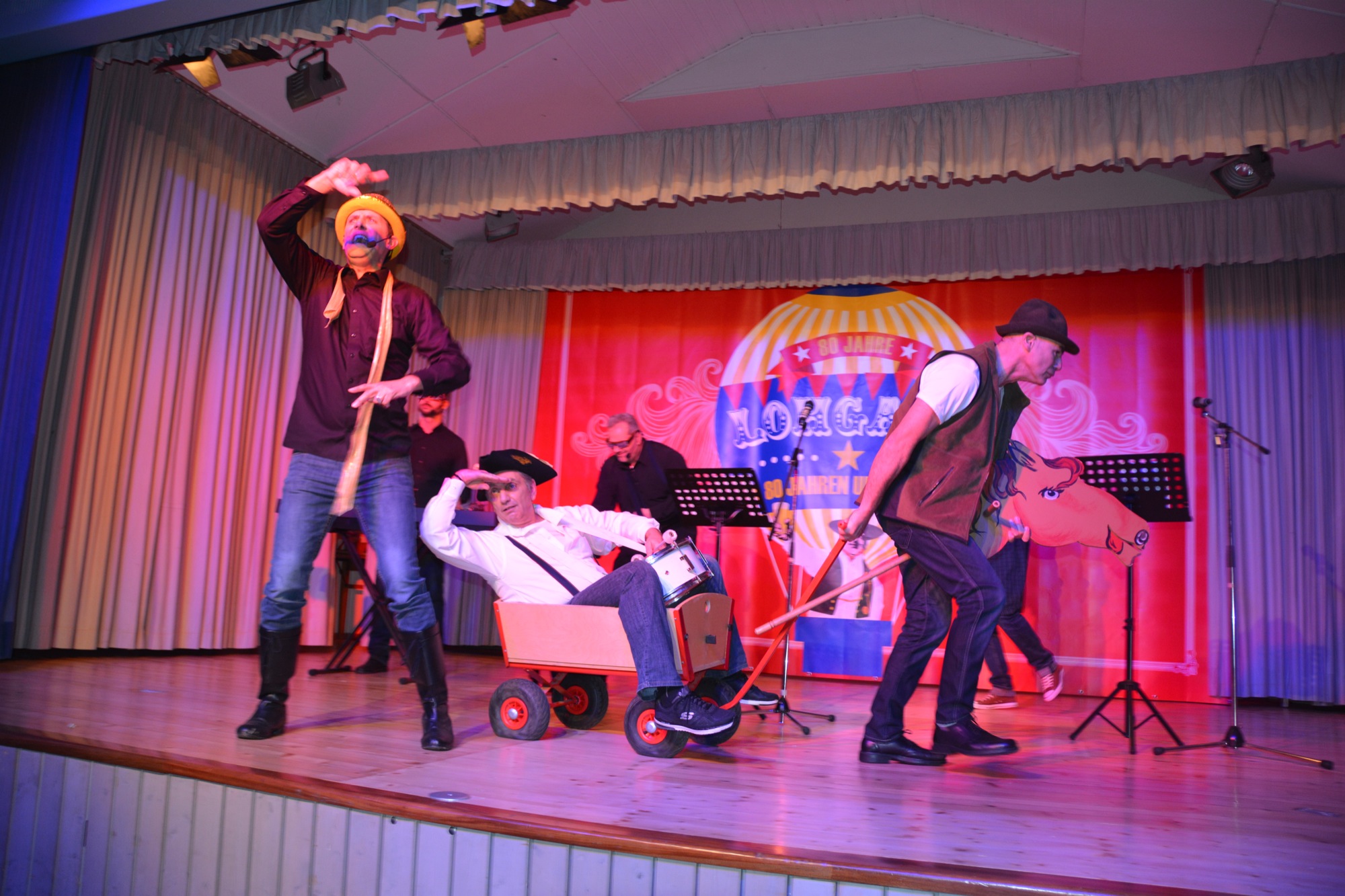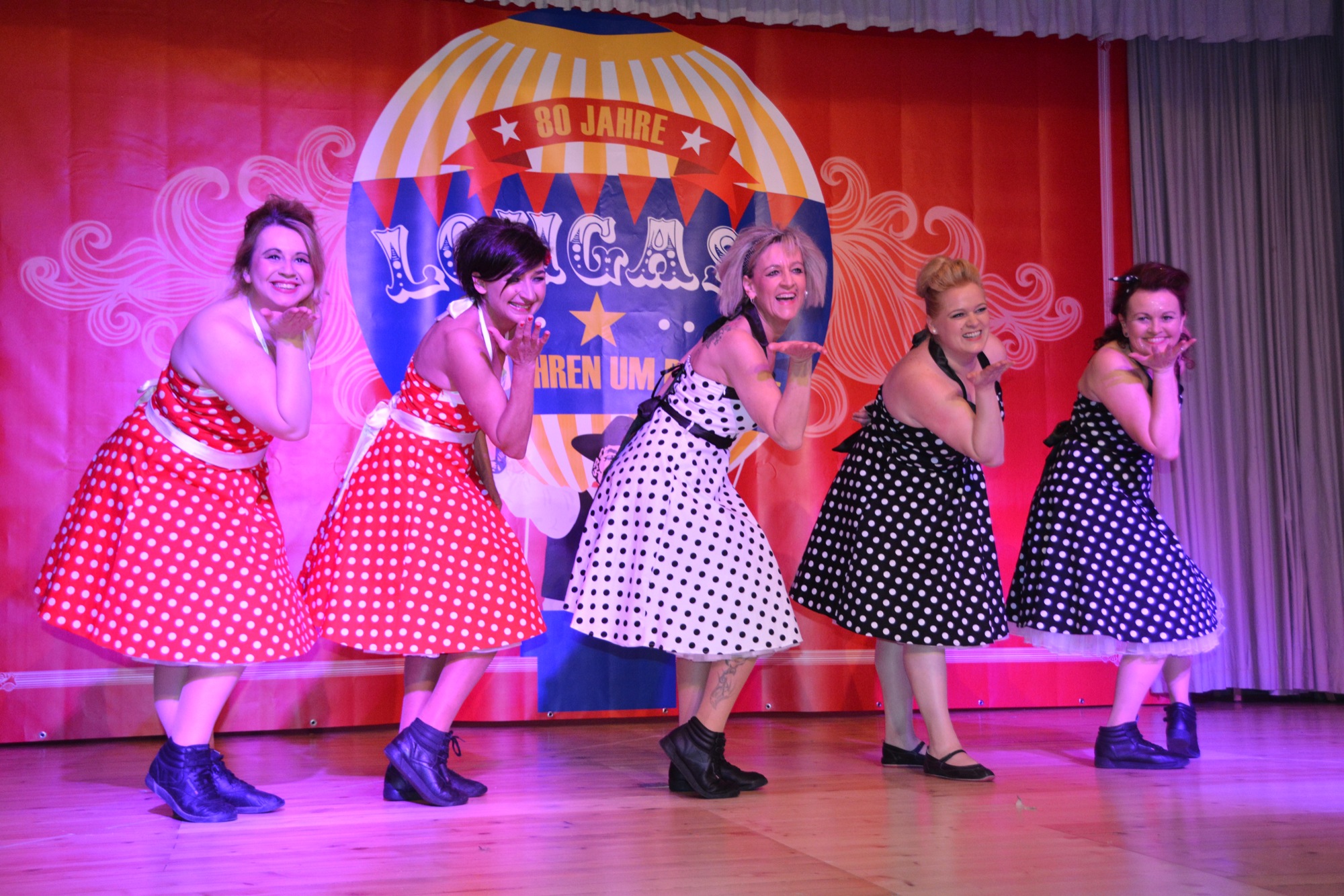 Drauf haben es die Lohgass-Zigeuner mit dem Tanzen. 80 Jahre ließen sie schwungvoll Revue passieren – vom Twist über den Ententanz bis hin zum Cotten eye Joe und der Sexy Lady. Der rasante Tanzmix endete in »Happy Birthday to you«. Die Lohgass feierten sich selbst mit einer rauschenden Geburtstagsparty.