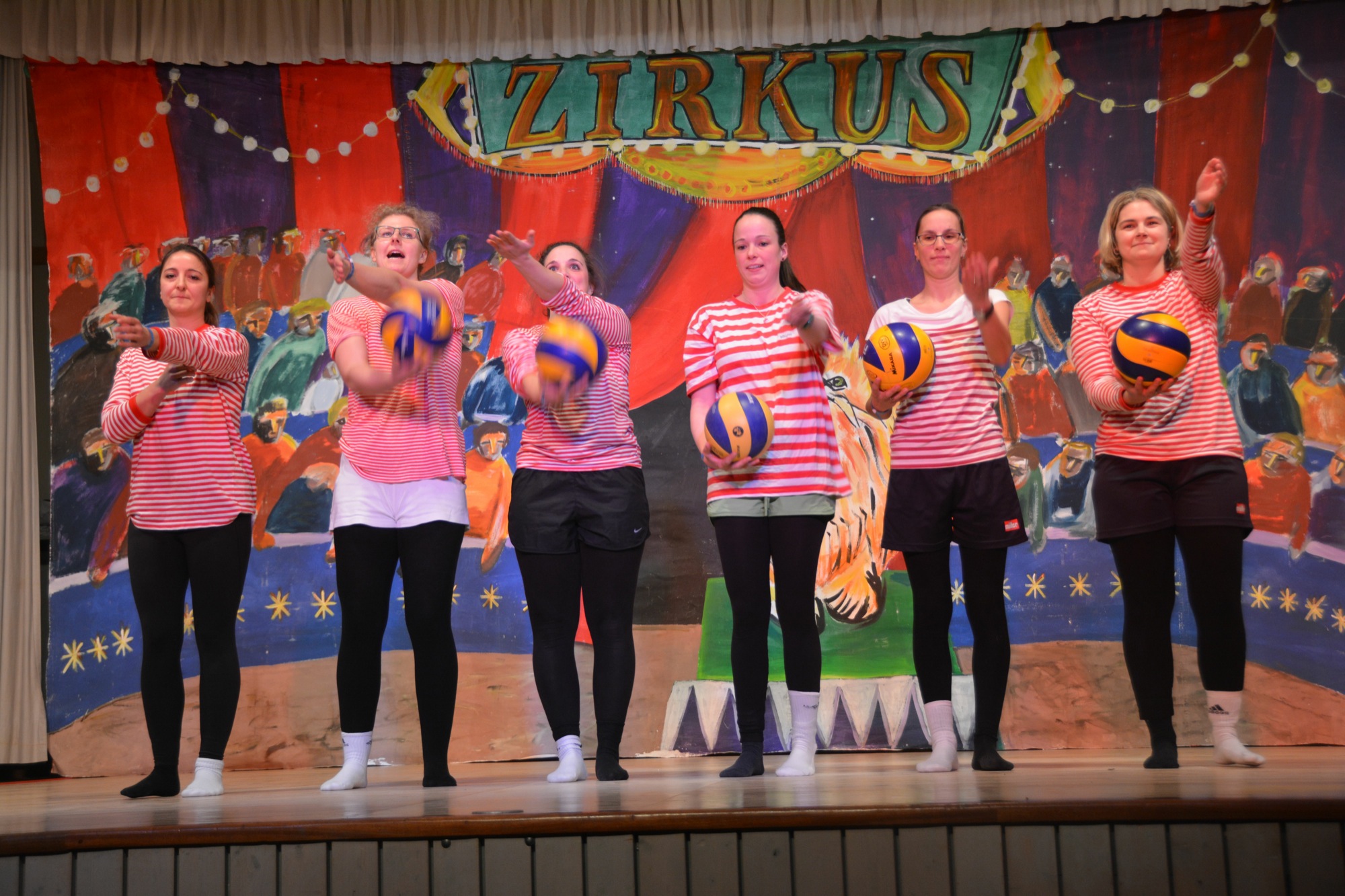 Ganz in ihrem Element waren auch die Ballkünstlerinnen der Volleyballabteilung, die passend zum Zirkusthema mit dem Ball jonglierten – »und sich dabei gar nicht blamierten«. Auch mit ihrem Schwarz-Weiß-Ballett sorgten sie für verblüffende Bewegungen und Figuren.