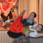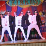 Einen weltweit einmaligen Dressurakt präsentierten die beiden Dompteusen Carmen und Julia dem beeindruckten Publikum: dressierte Männer! Diese steppten in ihren schwarzen Catsuits, garniert mit weißem Hut und weißer Krawatte in Genesis-Manier hintereinander durch die Manege und über das Schrägbrett. Zum Song »I cant‘ dance« ließen sie – in untypischer Männermanier – den Staubwedel wirbeln und wurden zu Tellerwäschern. Selbst die Pinkelpause wurde – noch untypischer – im Sitzen erledigt. Wen wundert’s, bei diesen beiden unwiderstehlichen Dompteusen, die ihre Peitschen knallen ließen? Da wurden selbst die männlichsten aller Männer ganz brav.