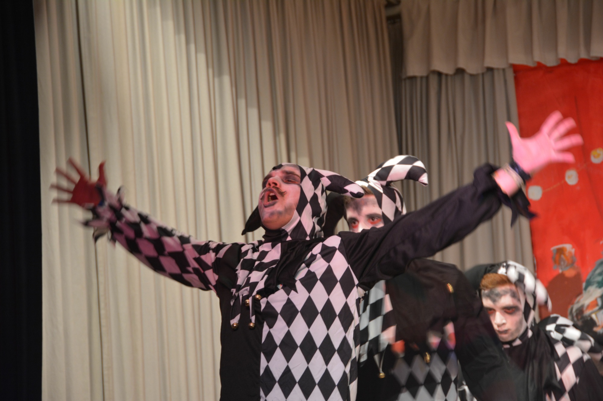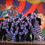 Ebenfalls ganz in Schwarz und Weiß präsentierten sich die schaurigen Harlekins, die mit ihrem gespenstischem Tanz und ihren Fratzen im »Zirkus des Grauens« auftauchten. Der kraftstrotzende Männertanz mündete in große Gefühle: Zum »Flashdance«-Welthit »What a feeling« tänzelten die Jünglinge in aufreizenden schwarzen Bodys und mit kurzen Nylonstrümpfen.