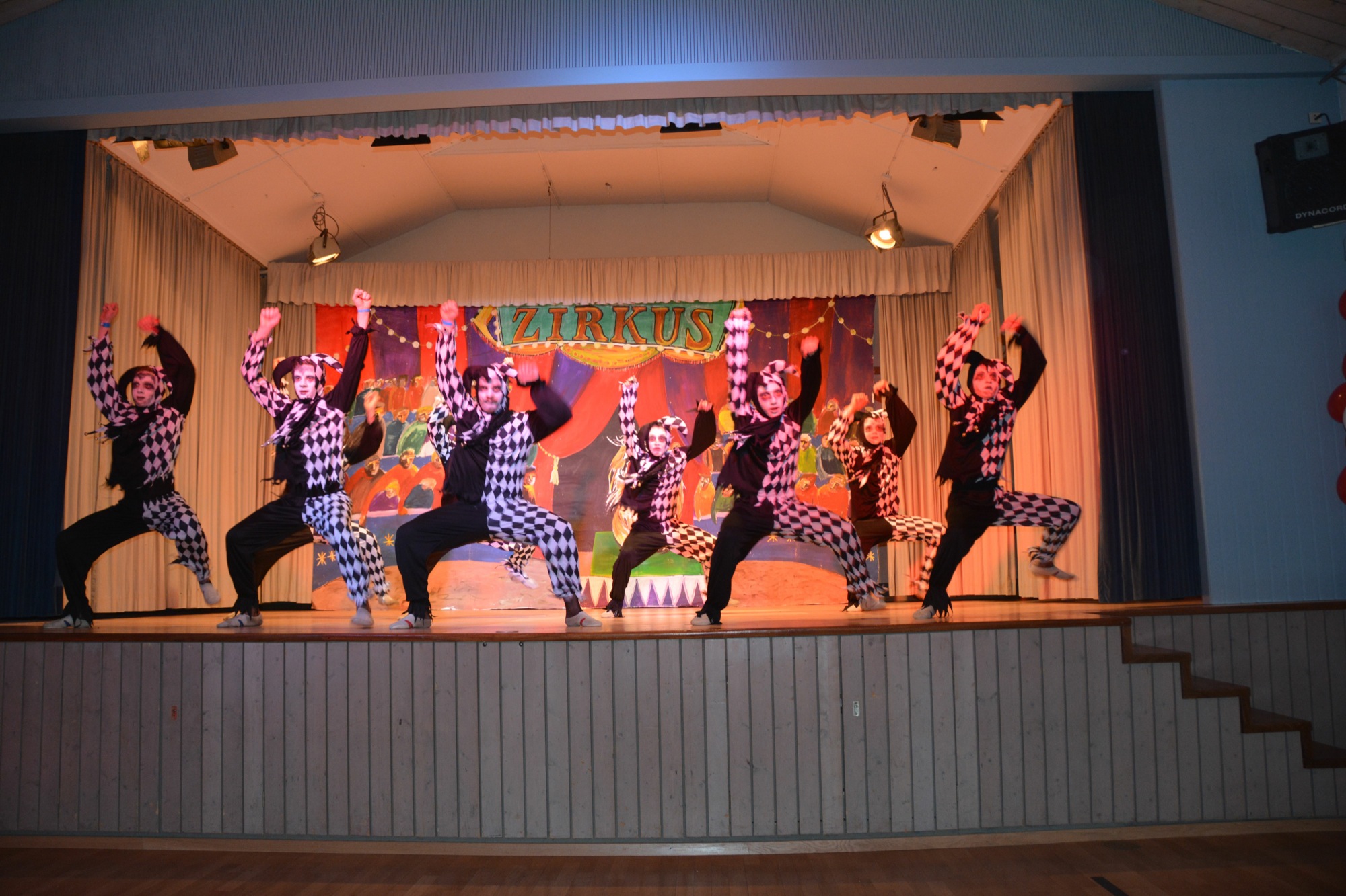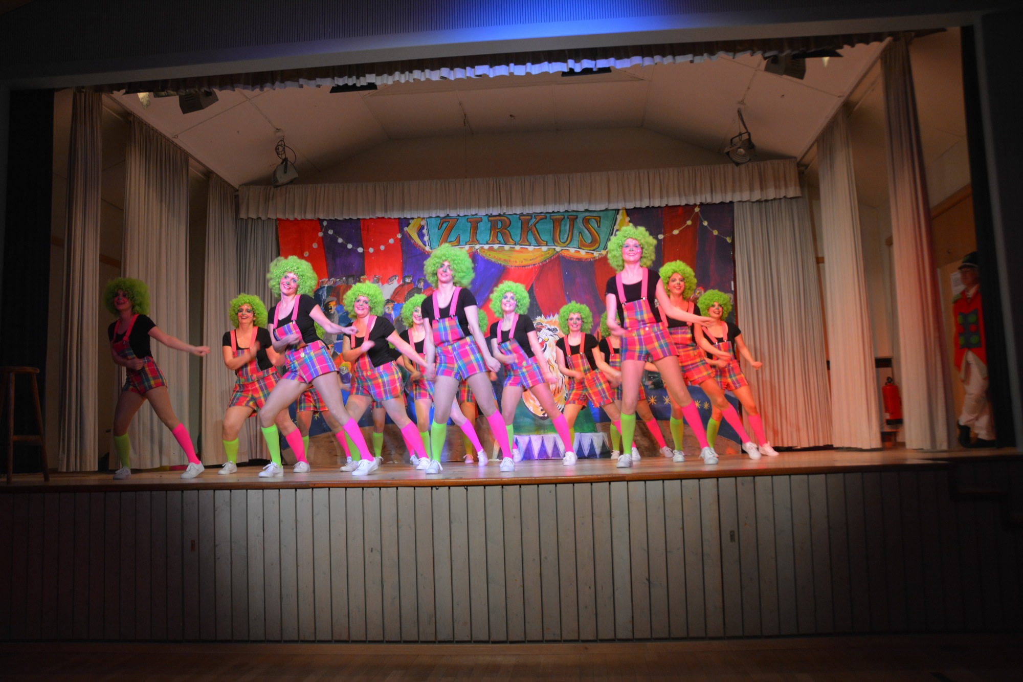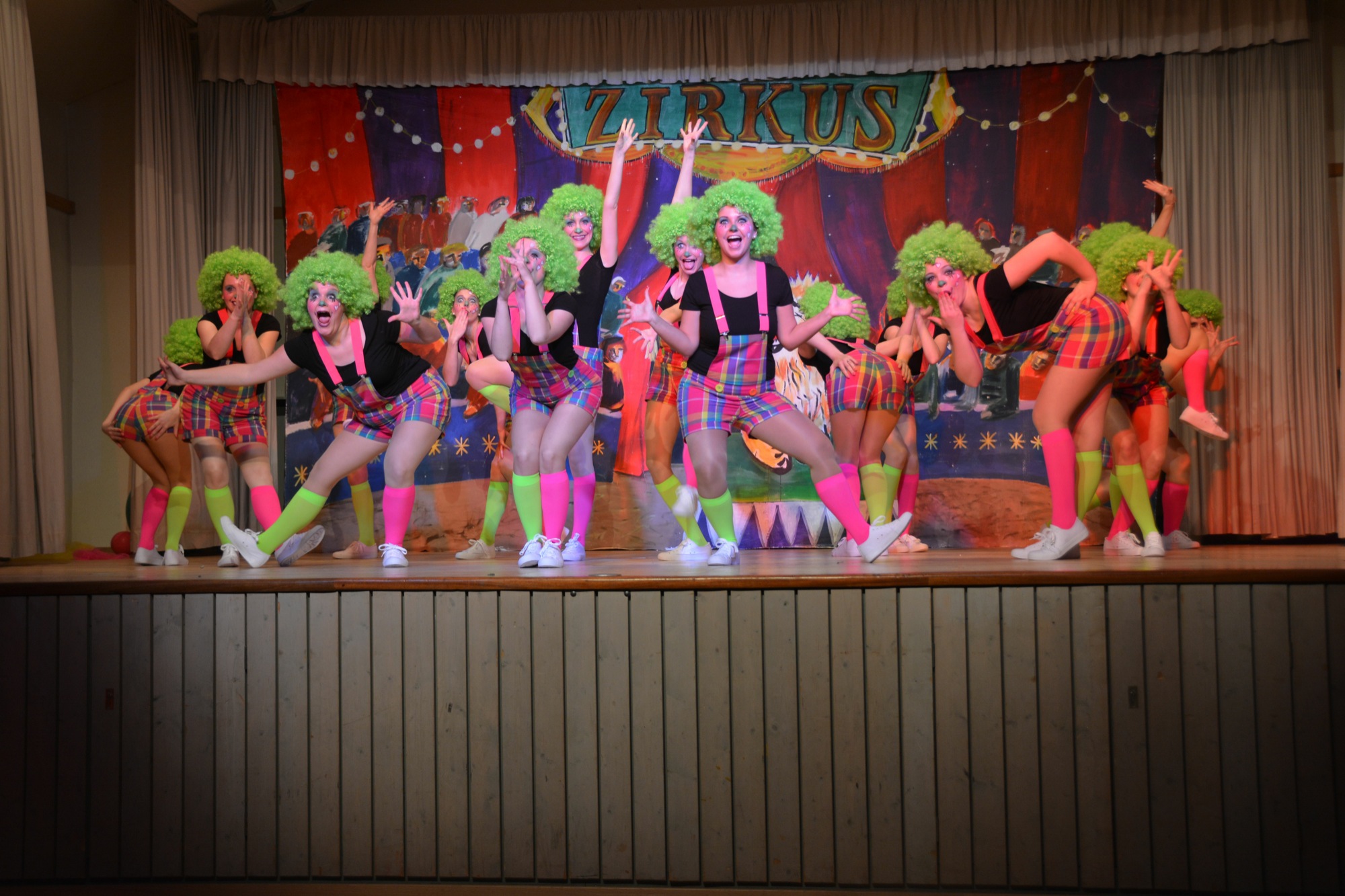 Der Tanzgruppe »Charisma« des TV Zell blieb es vorbehalten, mit ihrem perfekten Showtanz das Finale des mitreißenden Zirkusabends zu bestreiten. Gekleidet in kurze, bunt karierte Clownhosen, mit pinken und neongrünen Socken und einer leuchtend grünen Perücke wirbelten die frechen Clowns kunterbunt durch die Manege und versprühten Spaß und gute Laune. Sie glänzten nicht nur mit einer ausgefeilten Choreographie, sondern neckten das Publikum ganz nach Clown-Art mit ihrem Schalk: machten den Zuschauern lange Nasen oder strecken ihnen die Zunge entgegen. Die Charisma-Mädels kombinierten Power und rasante Schrittfolgen mit Rhythmus und Elan – ein Traum im Turnerball-Zirkus, der erst nach einer Zugabe der 15 Tänzerinnen in eine lange Zeller Fasendnacht mündete.