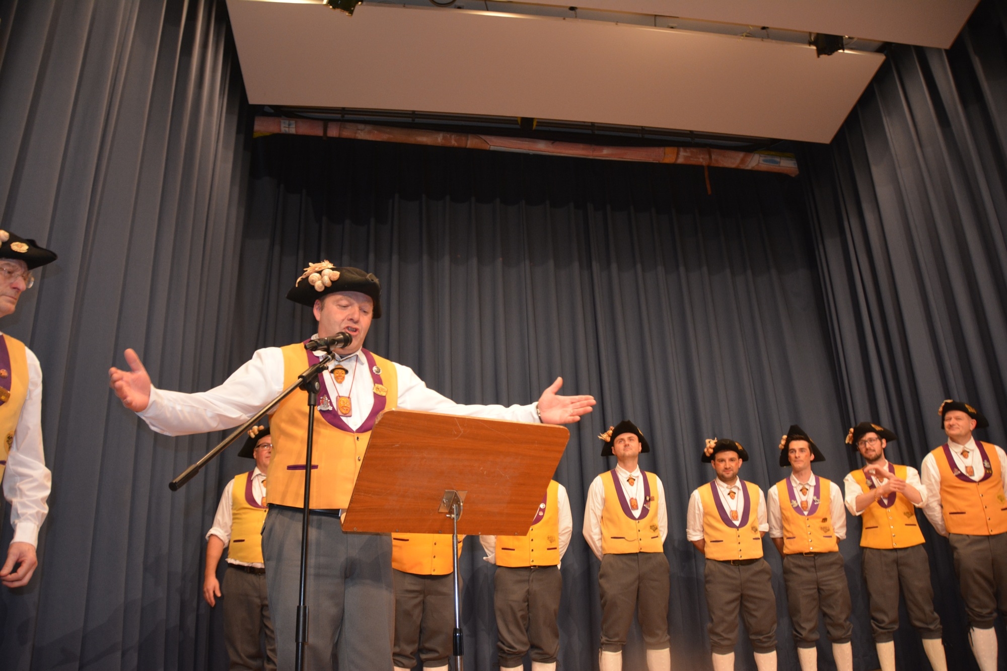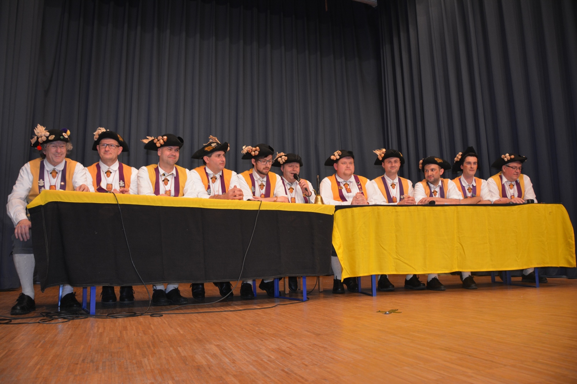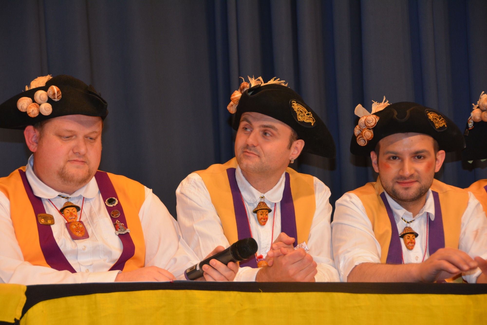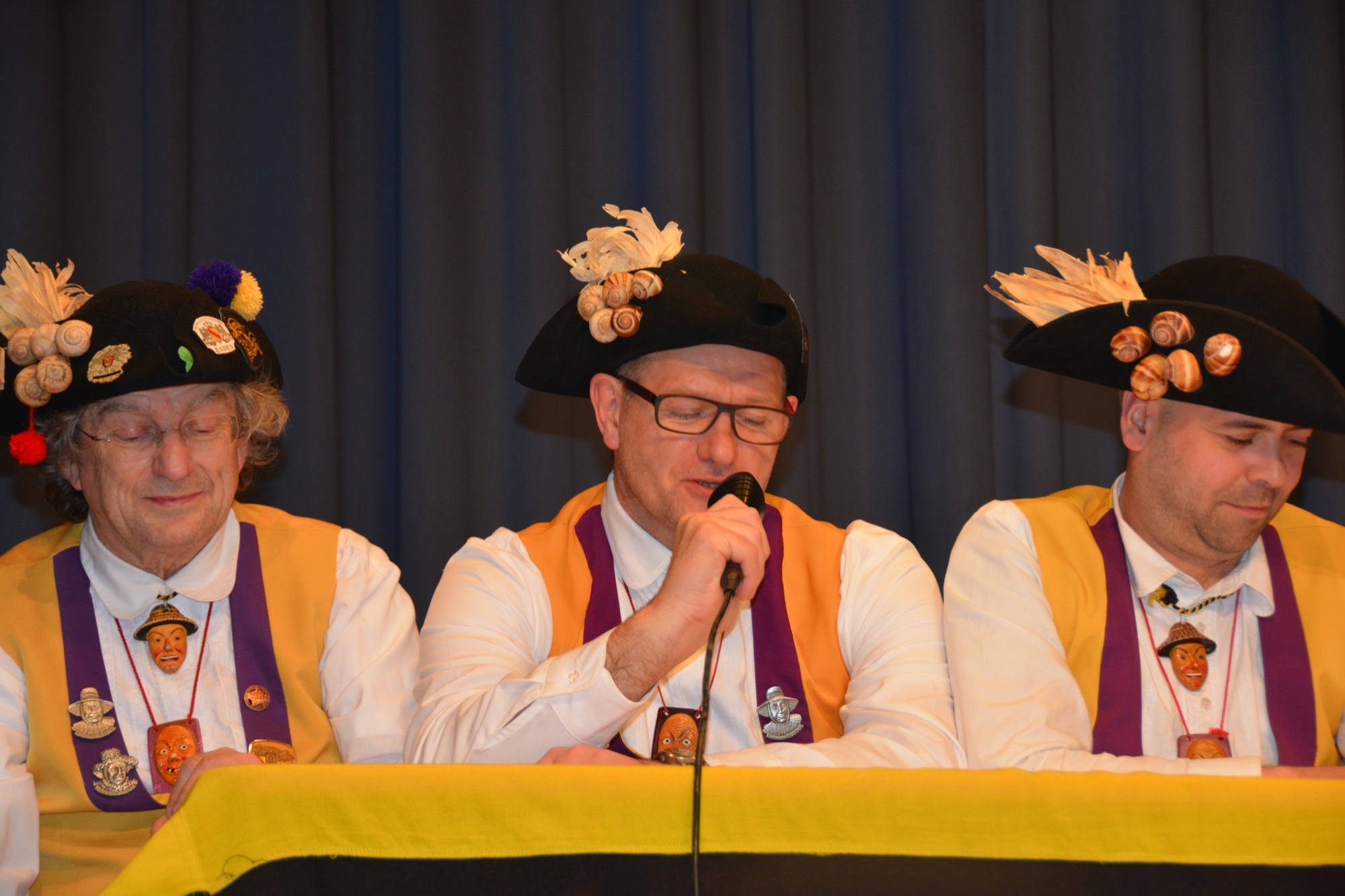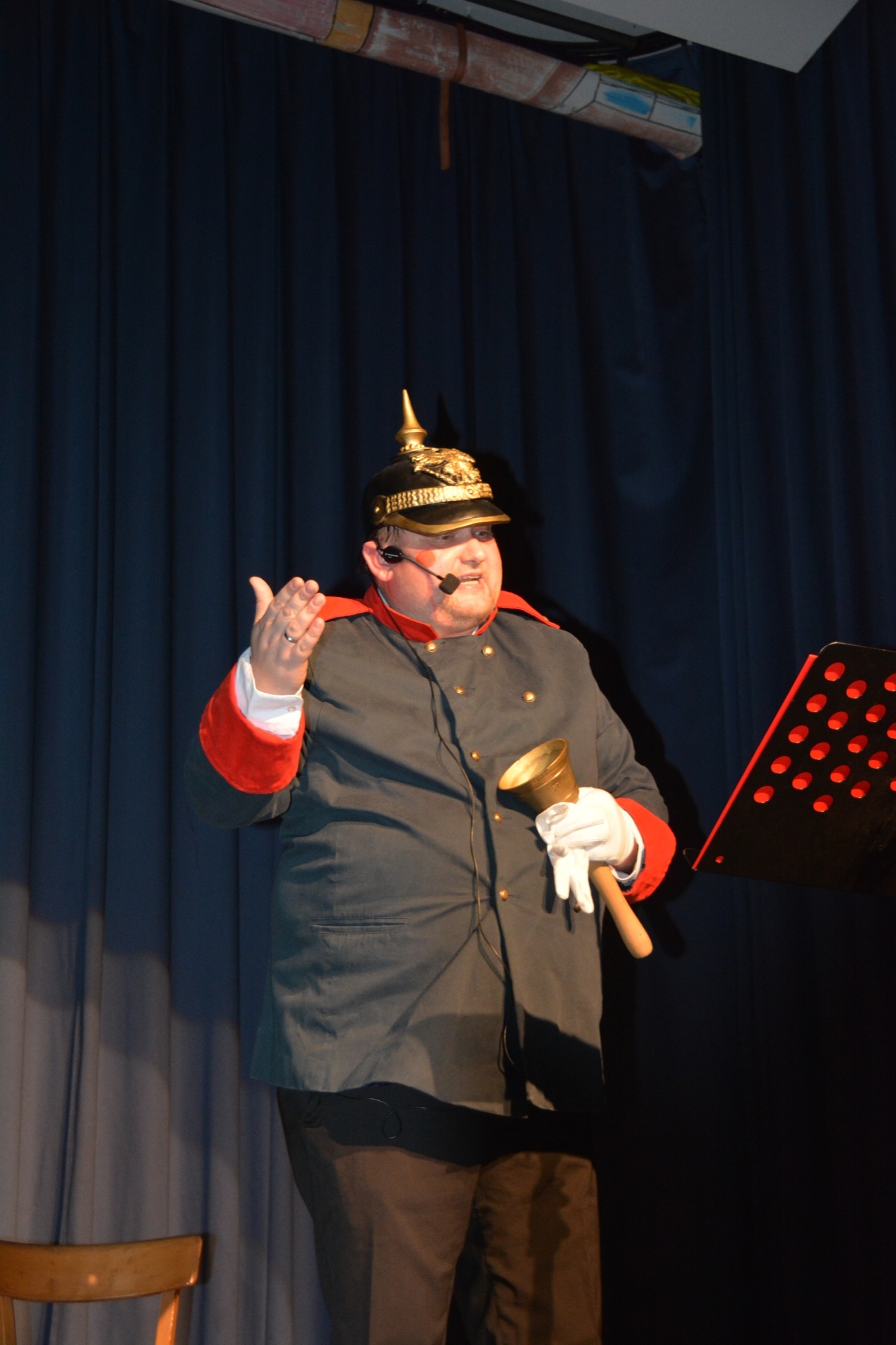 Ein fast schon närrisches Jubiläum konnte »d’ Bott« alias Stefan Polap beim Zunftabend feiern: »Vor 10 Johr hät ich des nitt gedenkt, mir drübber au nit s’Hirn verrenkt. Dass ich des derf mol so long mache, hoff bring eich au dessjohr wäng zum Lache!« Auch beim Bott lohnte es sich genau hinzuhören, als er mit der Narrenglocke und unter seiner Pickelhaube wortgewaltig seine »Bekonntmochungen« ausrief. Herrliche Schnitzer hatte er wieder aufgesammelt. So berichtete er unter anderem von den 300 Forellen in Hubert Kornmayers kleinem Teichle »für den Hausgebrauch«. Und über die Nasch-Attacke von Corinna Schwarz: da war der Großeinkauf bei »ChocoL« schon vor Weihnachten weg.