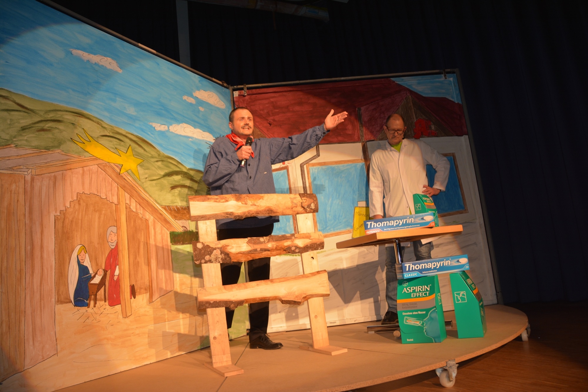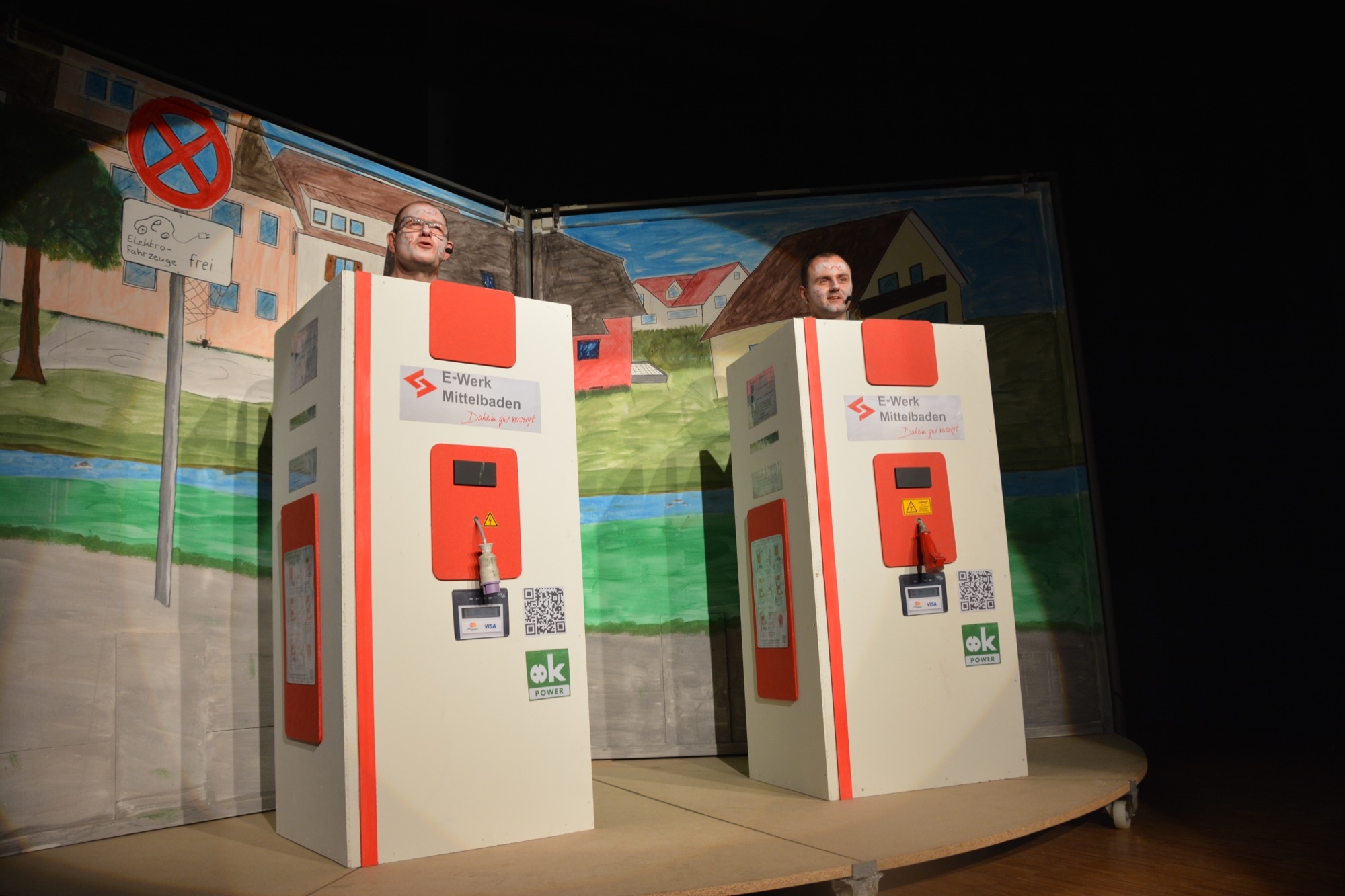 Ein urkomisches Narrentheater in drei Szenen bot die Nummer »Miss-Verständnisse«. In den Hauptrollen die beiden E-Zapfsäulen auf dem Sonnenparkplatz, der Bürgermeister und drei seiner Räte, der Ortsvorsteher und der Apotheker vom Hombe und immer wieder die aus allen Online-Kanälen und Medien bekannte Mattenbäuerin. »Mir sin die, wo baue wolle«, tönten die Räte und sinnierten, warum berühmte Zeller wie der Ritter von Buß seine eigene Straße erhalten, der Horst Feuer aber nur seine Gässle? Derweil wunderte sich der Apotheker vom Hombe, warum seine Parkplätze voll, sein Geschäft aber trotz »Krippen«-Welle leer ist? Und die Bäuerin wollte ihren alten Deutz an der E-Tankstelle betanken. Neuheiten haben es eben schwer in Zell!