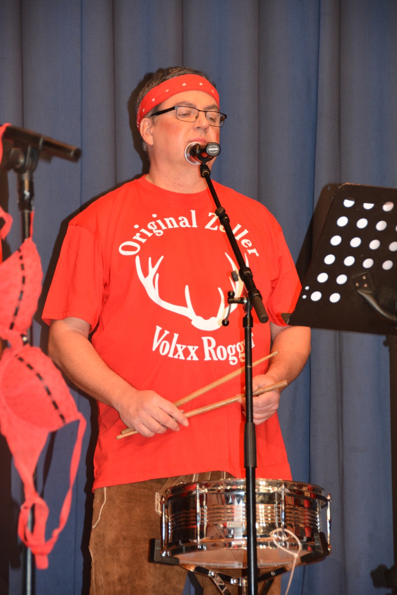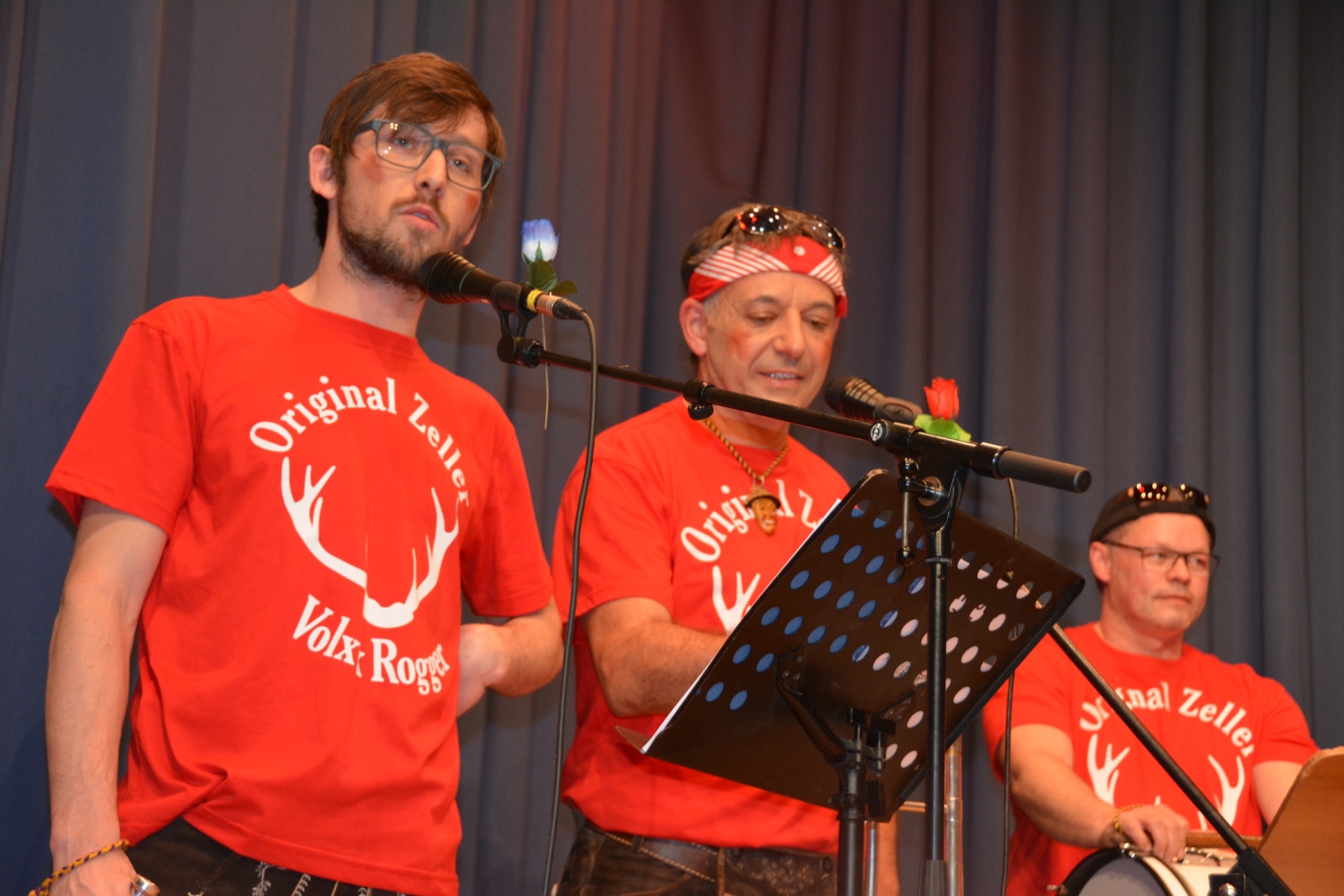 Die Obernarren der Narrenzunft Zell begeisterten das Publikum nicht nur mit geschliffenen Versen, sondern verwandelten sich als »Zeller Volxx-Rogger« in eine schmissige Fasendkapelle, die all jenen ihr Liedchen trällerte, die am Fasendmändig statt zur überlieferten Fasendtradition in Nordrach abrocken. Nicht nur Alt-Narrenrat Hans-Jürgen Hirt hatten sie als »Fasendflüchtling« ausgemacht. »Ich bau Dir ein Schloss« frohlocken sie über die Sanierung des Rundofens und schmachteten: »Denn die Liebe zu Hahn- und Henne, die vergeht in Zell nie!« Den »Wahn, Wahn, Größenwahn«, hatten die Volxx-Rogger in Sachen Schulmensa ausgemacht. Zugabe!
