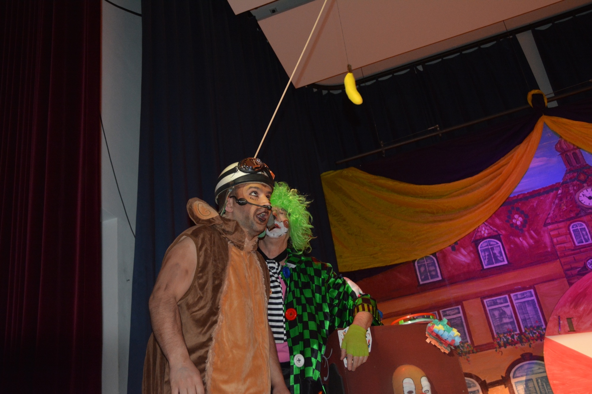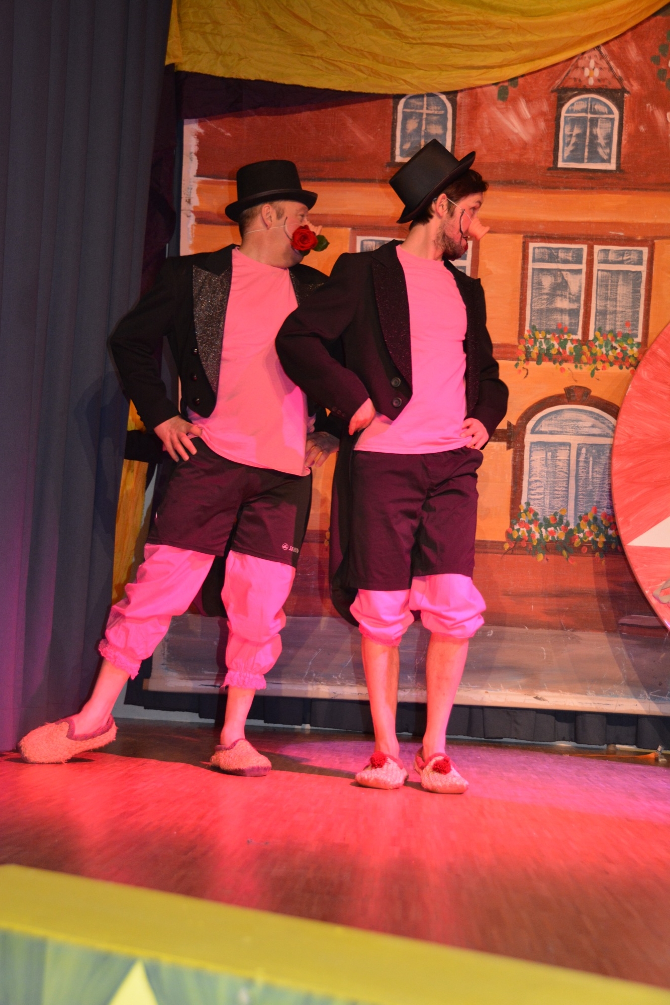 Ein drunter und drüber herrschte zum großen Finale im »Zirkus (vis à vis) Krone«, wo sich Clowns und Affen, Gewichtheber und ein gewichtiger Bauunternehmer ein Stelldichein gaben. »Willi der Messer« und seine scharfe Assistentin Elke wagten waghalsige Stunts, ehe die pinken Schweine ihren »Schweine-Tango« aufs Parkett legten. Da wackelten die Koteletts und die Zeller Fasend kam so richtig in Schwung. »Bravo! Zugabe! Zugabe!«