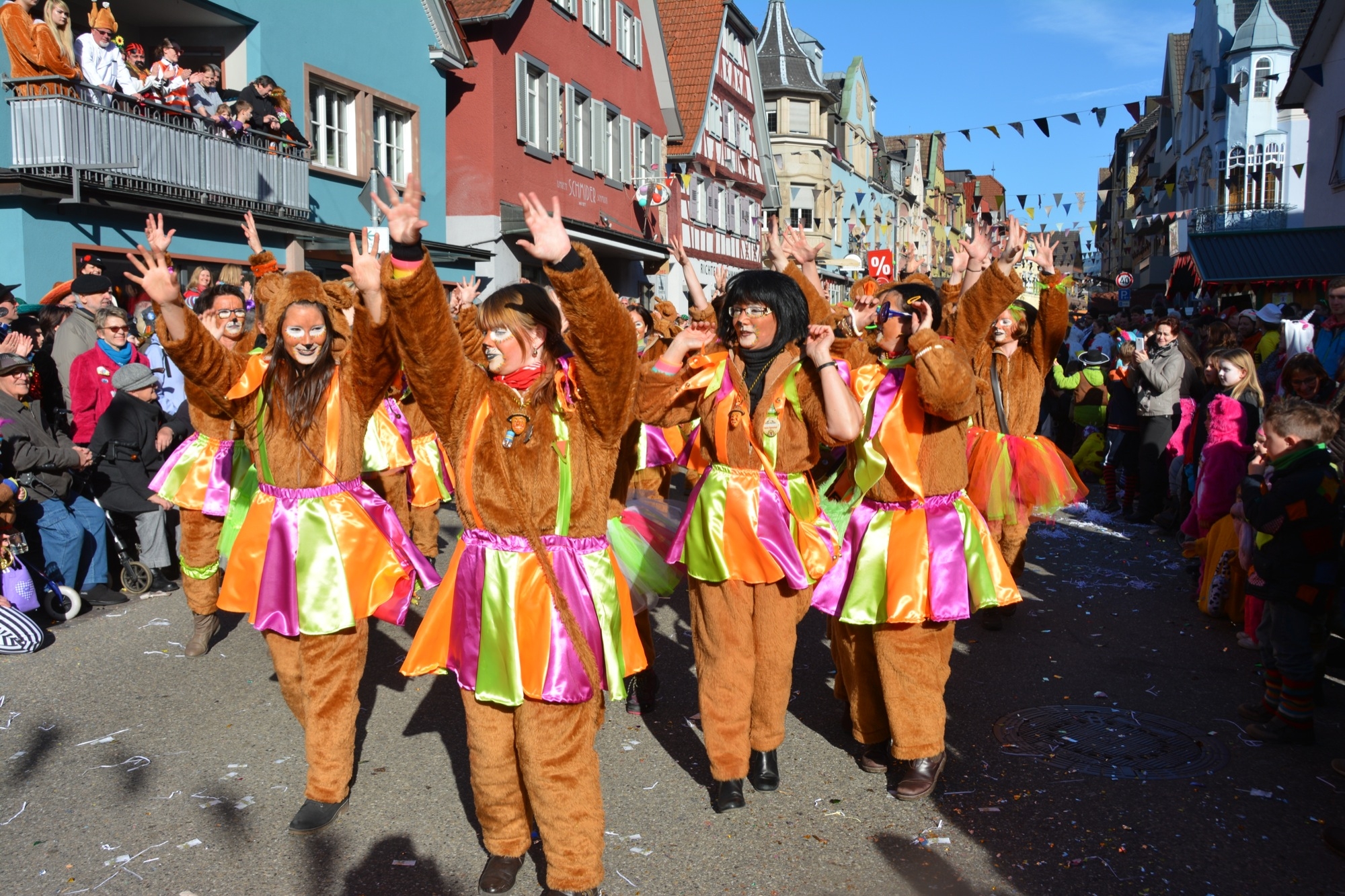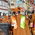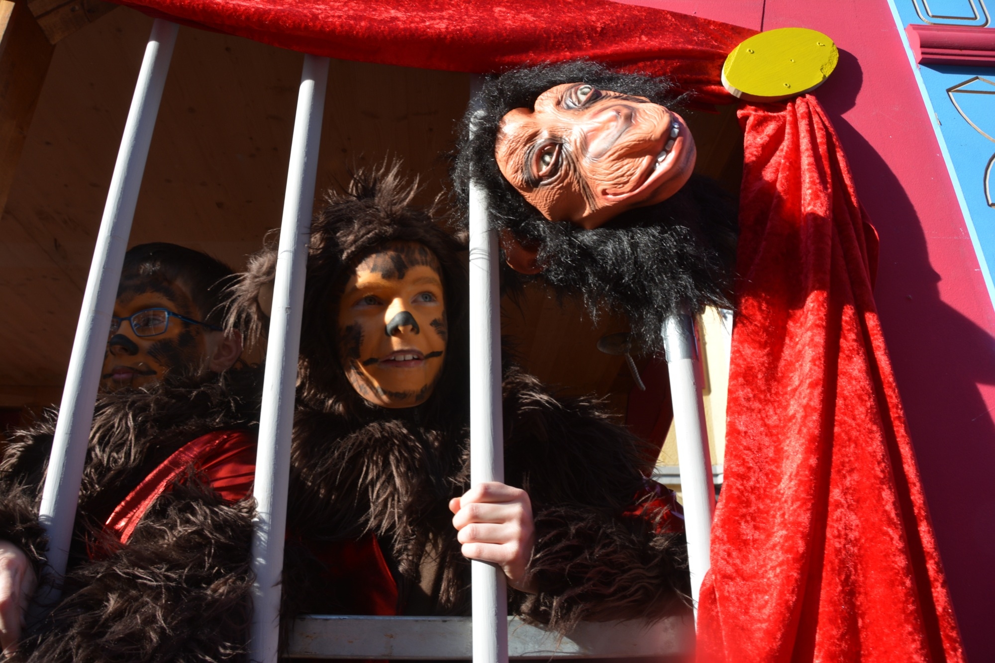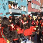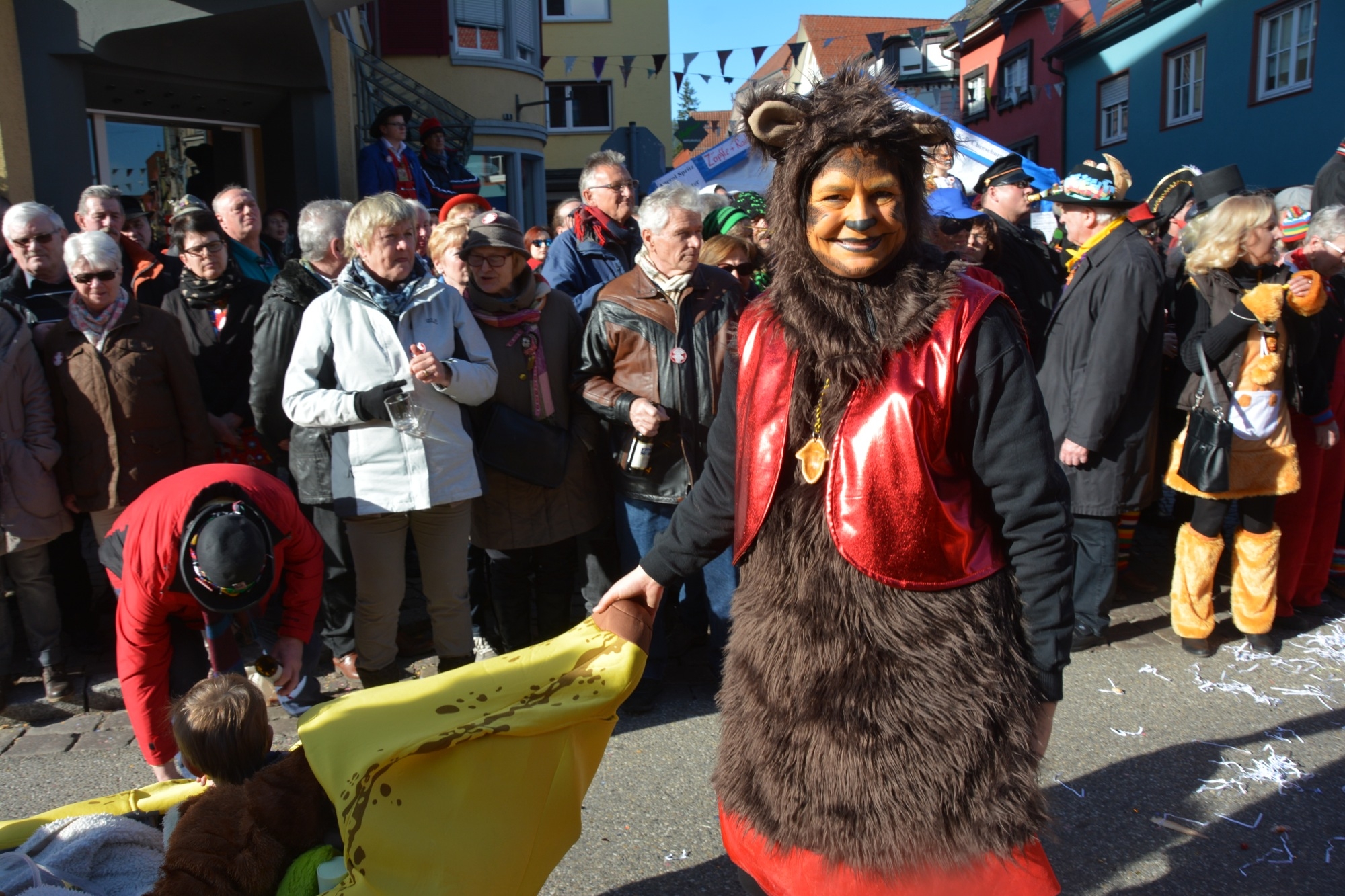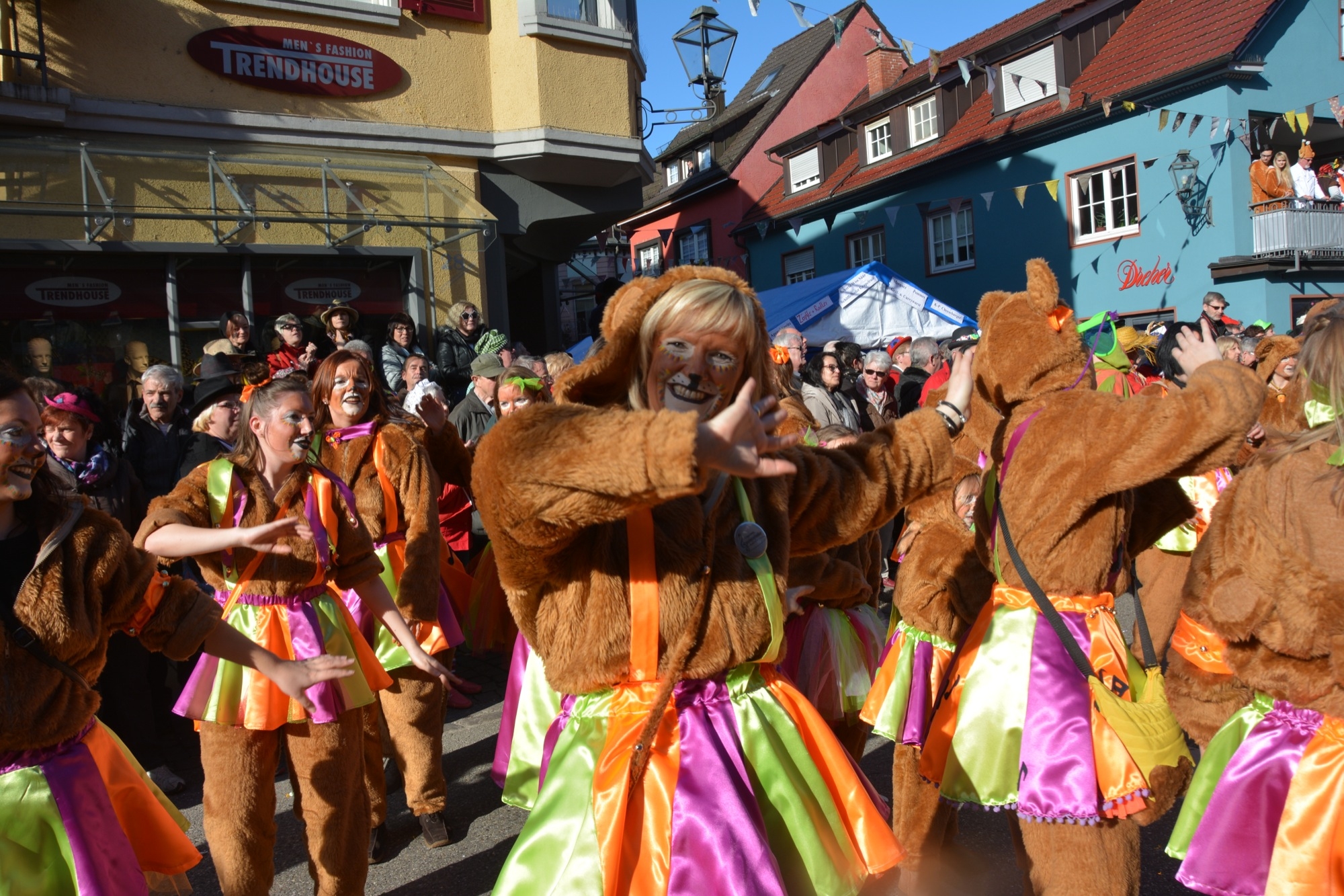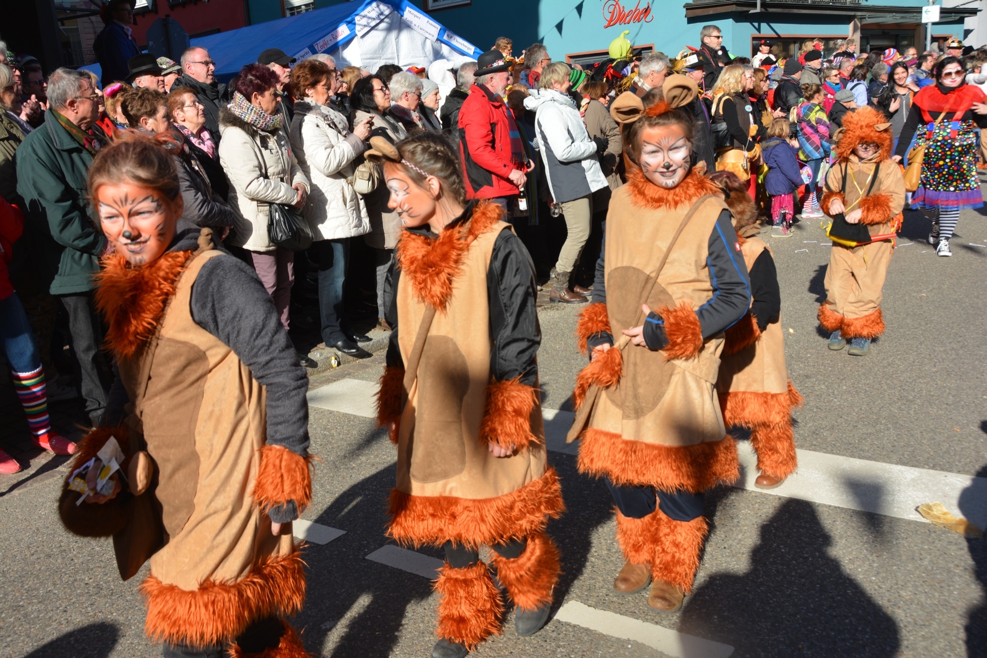 Der »Bruch« lud zum Affenzirkus ein. Als Affen und Bananen verkleidet tanzten durch die Straße, die »Bruch«-Kinder waren zum Teil auf Skate- und Hoverboards unterwegs. Überhaupt: Tiere waren das große Thema in diesem Umzug, denn auch das »Städtle« setzte das Motto tierisch um. Der Slogan »Im Städtle läuft de Bär om Gaukler hinterher« war Programm. Bei dieser Gruppe gab es tanzende Bären und Gaukler zu bestaunen.