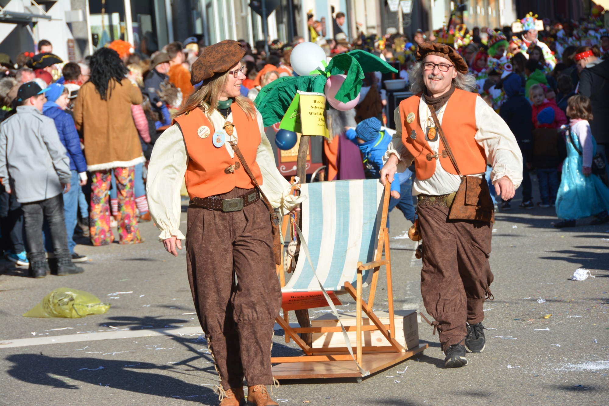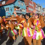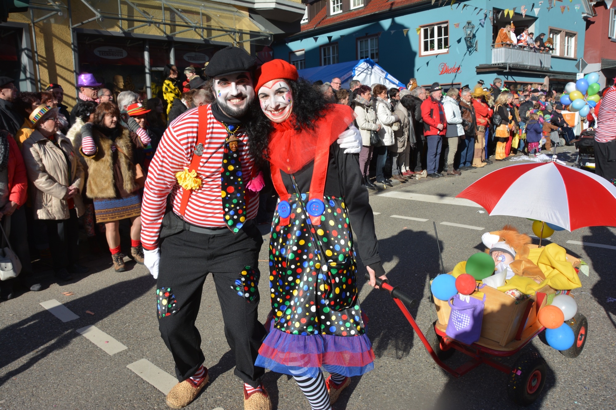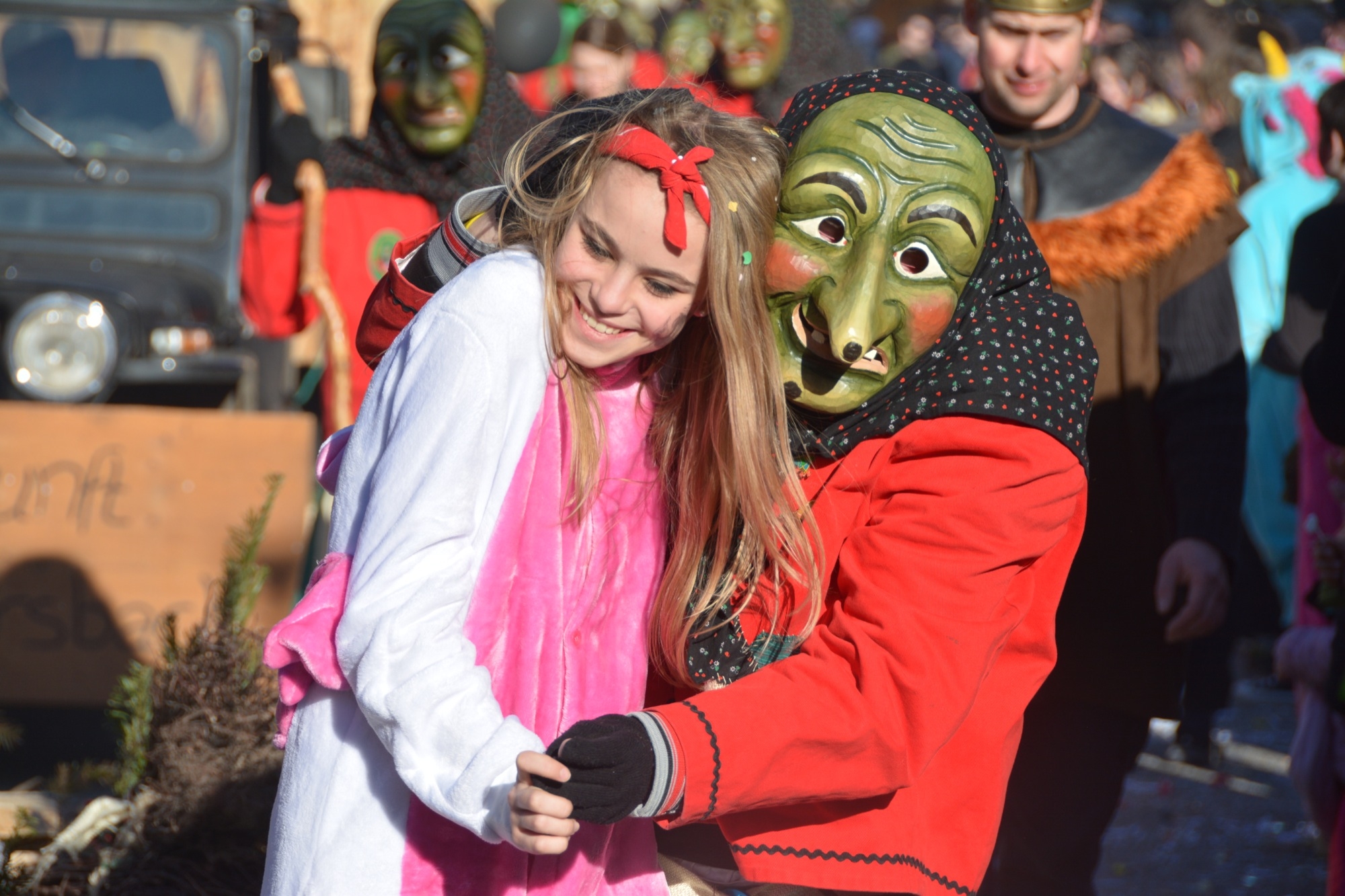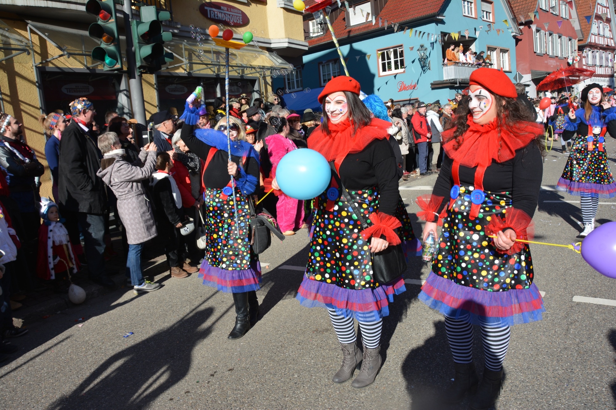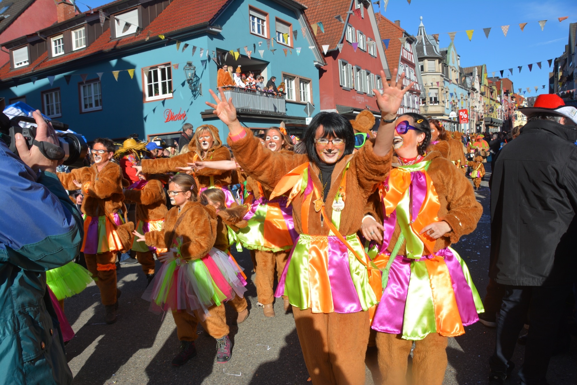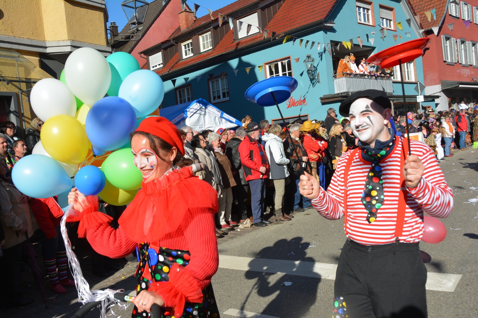 Der »Bruch« lud zum Affenzirkus ein. Als Affen und Bananen verkleidet tanzten durch die Straße, die »Bruch«-Kinder waren zum Teil auf Skate- und Hoverboards unterwegs. Überhaupt: Tiere waren das große Thema in diesem Umzug, denn auch das »Städtle« setzte das Motto tierisch um. Der Slogan »Im Städtle läuft de Bär om Gaukler hinterher« war Programm. Bei dieser Gruppe gab es tanzende Bären und Gaukler zu bestaunen.
