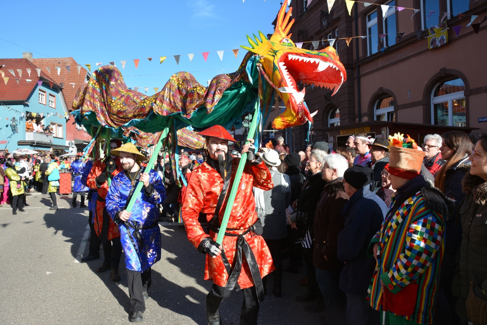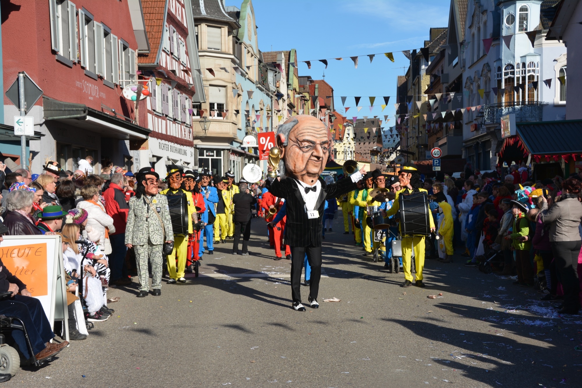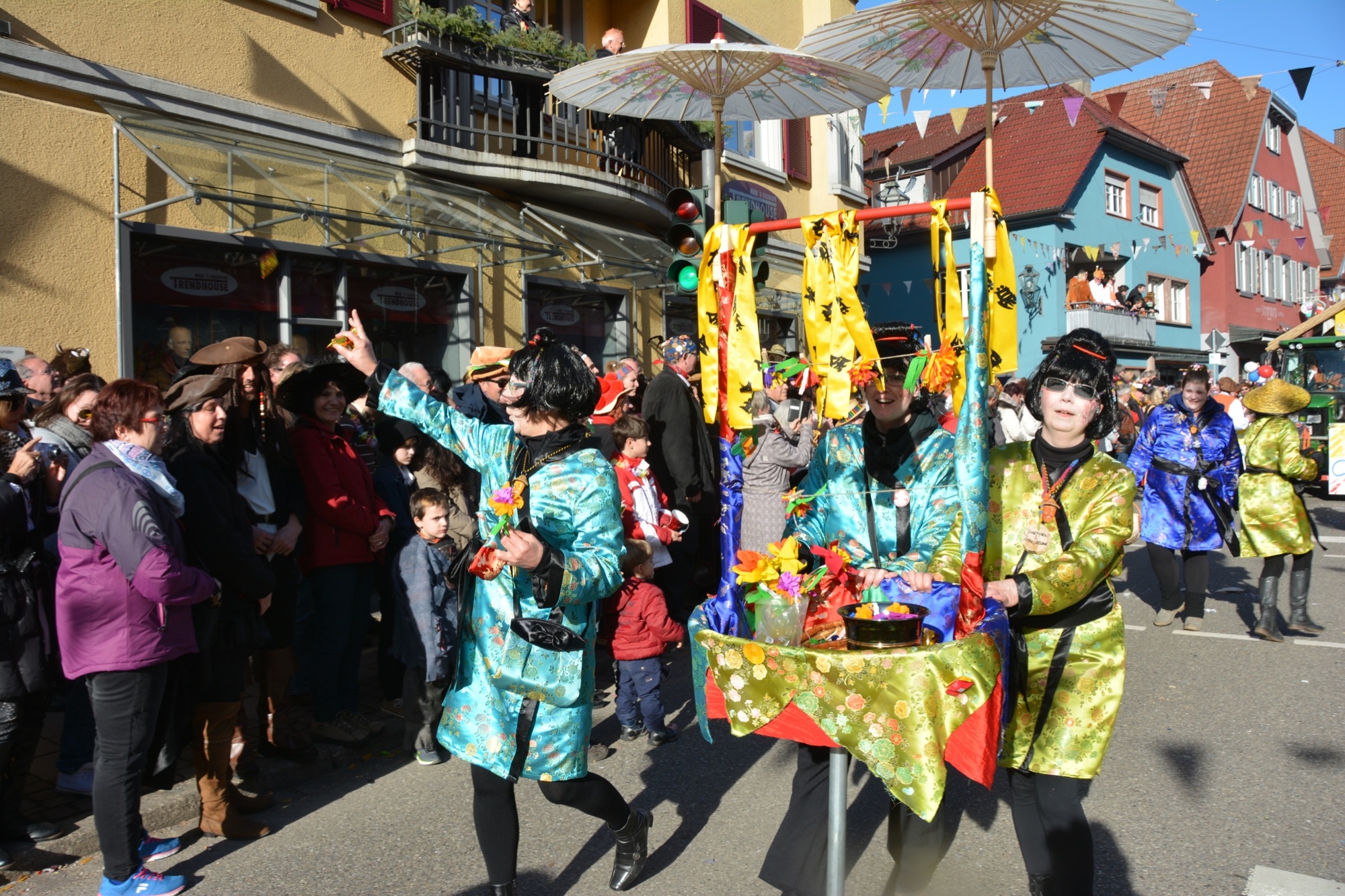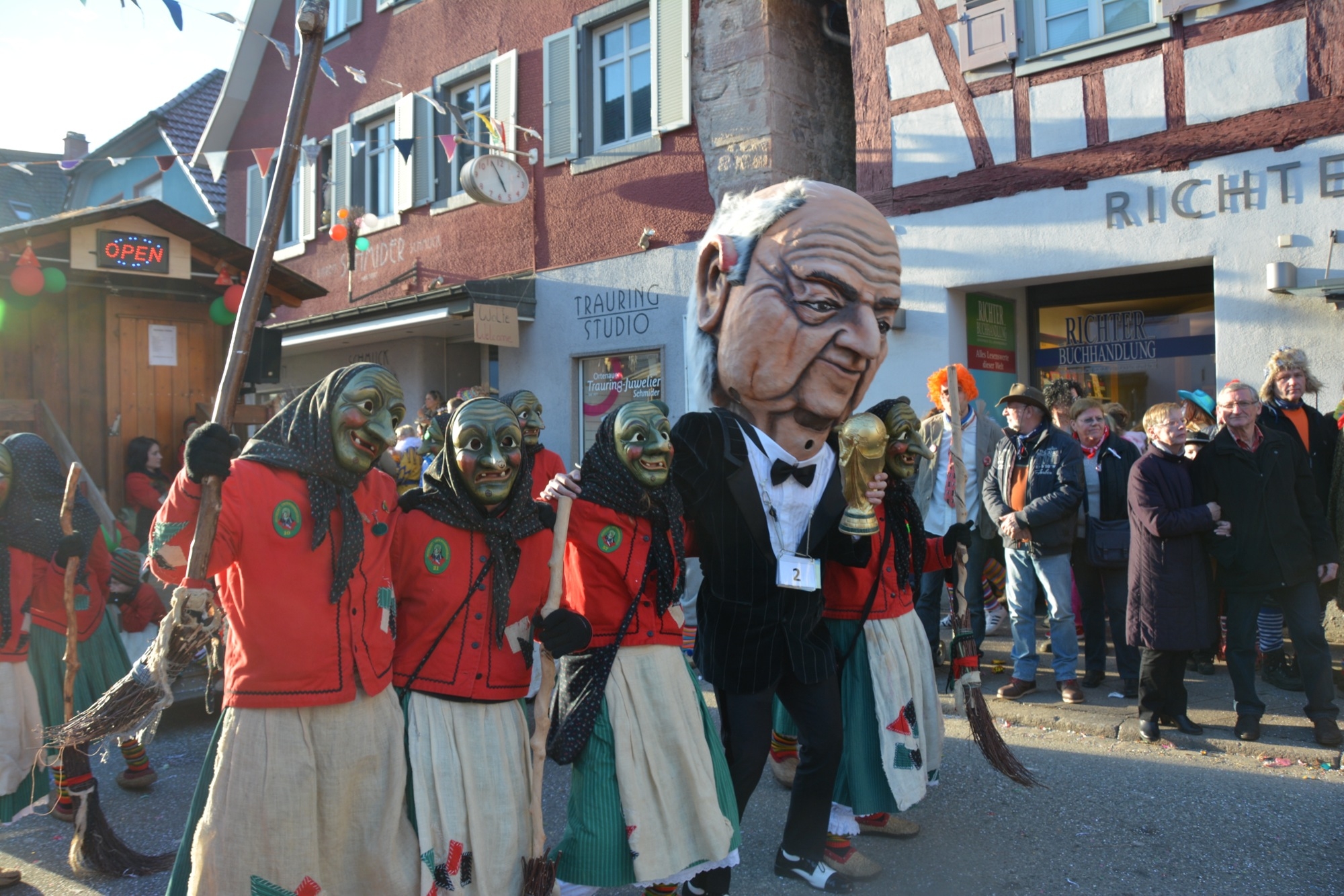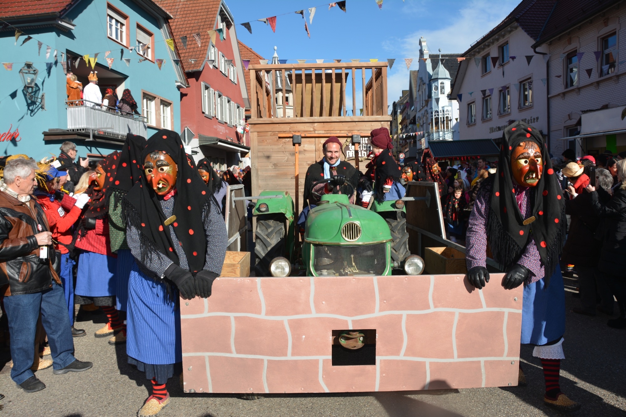Der »Bruch« lud zum Affenzirkus ein. Als Affen und Bananen verkleidet tanzten durch die Straße, die »Bruch«-Kinder waren zum Teil auf Skate- und Hoverboards unterwegs. Überhaupt: Tiere waren das große Thema in diesem Umzug, denn auch das »Städtle« setzte das Motto tierisch um. Der Slogan »Im Städtle läuft de Bär om Gaukler hinterher« war Programm. Bei dieser Gruppe gab es tanzende Bären und Gaukler zu bestaunen.