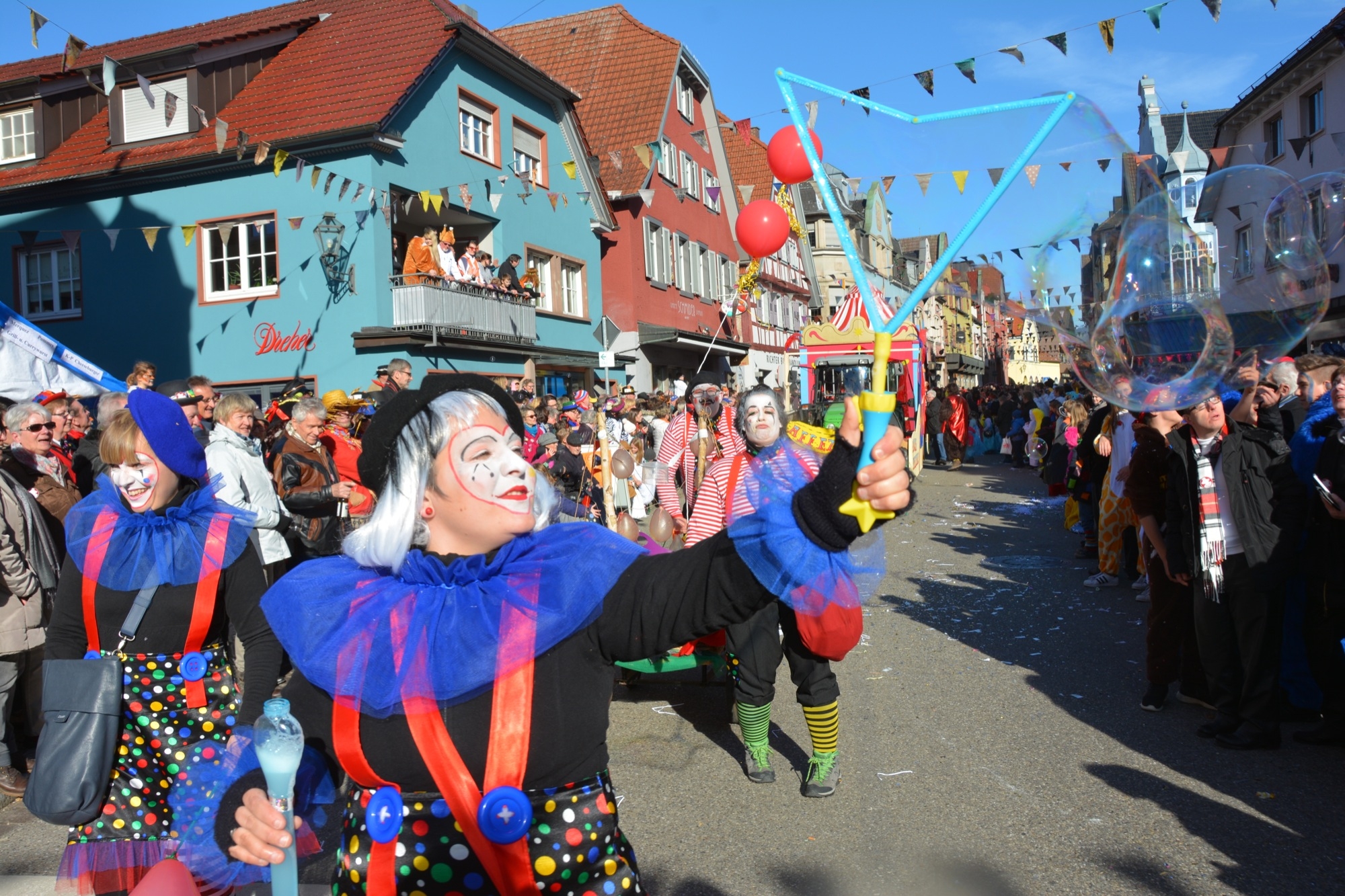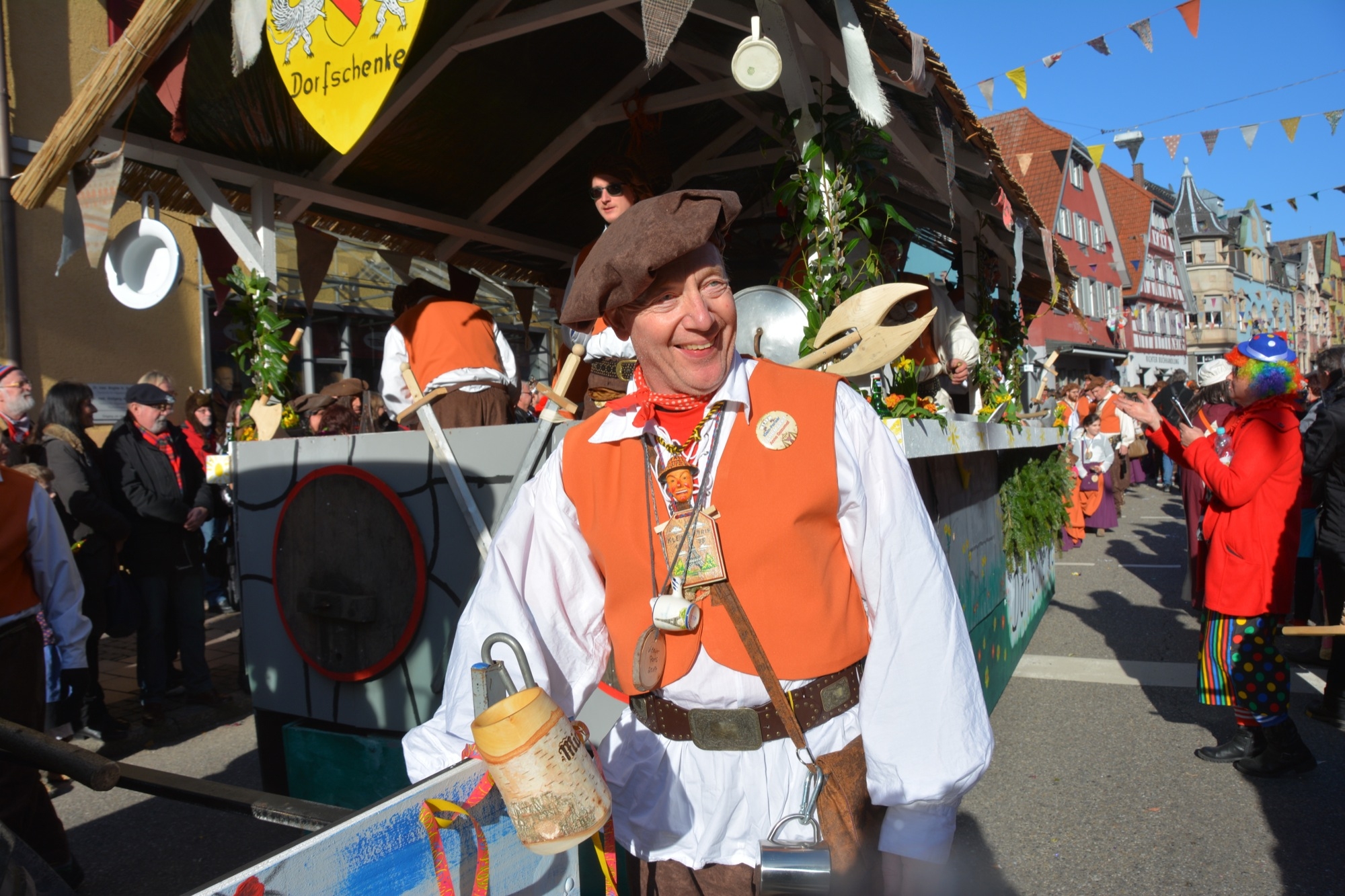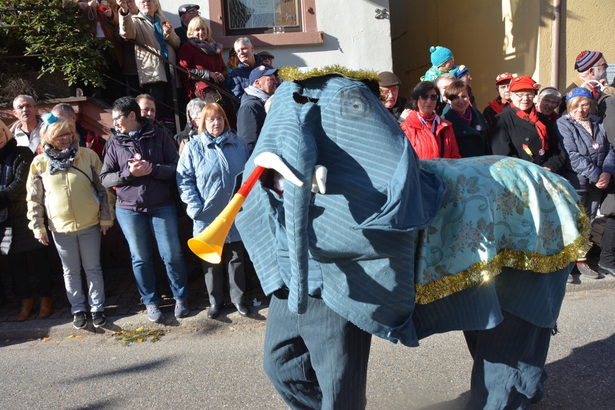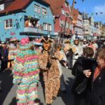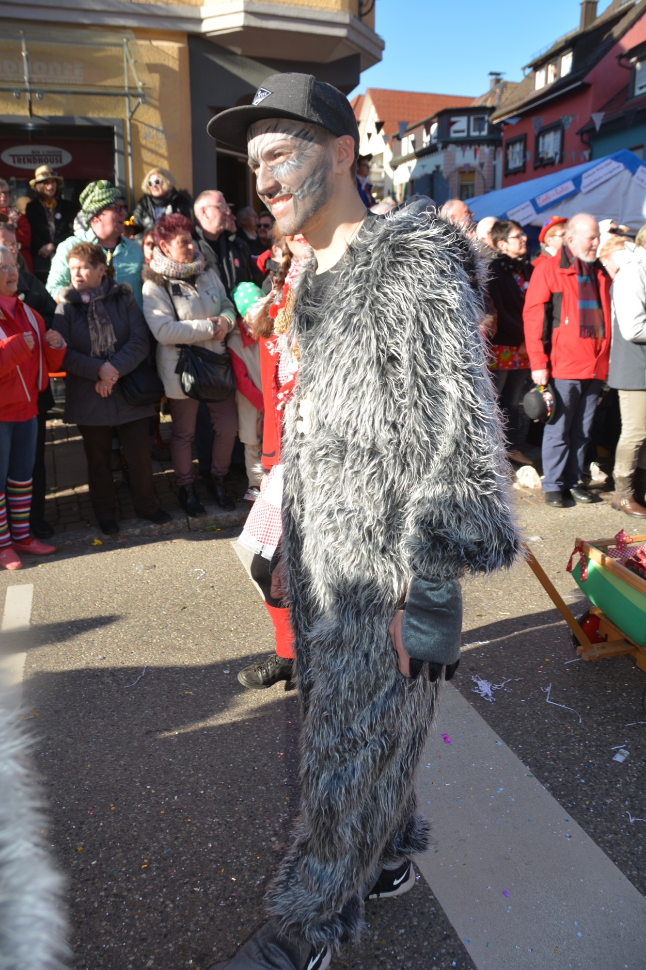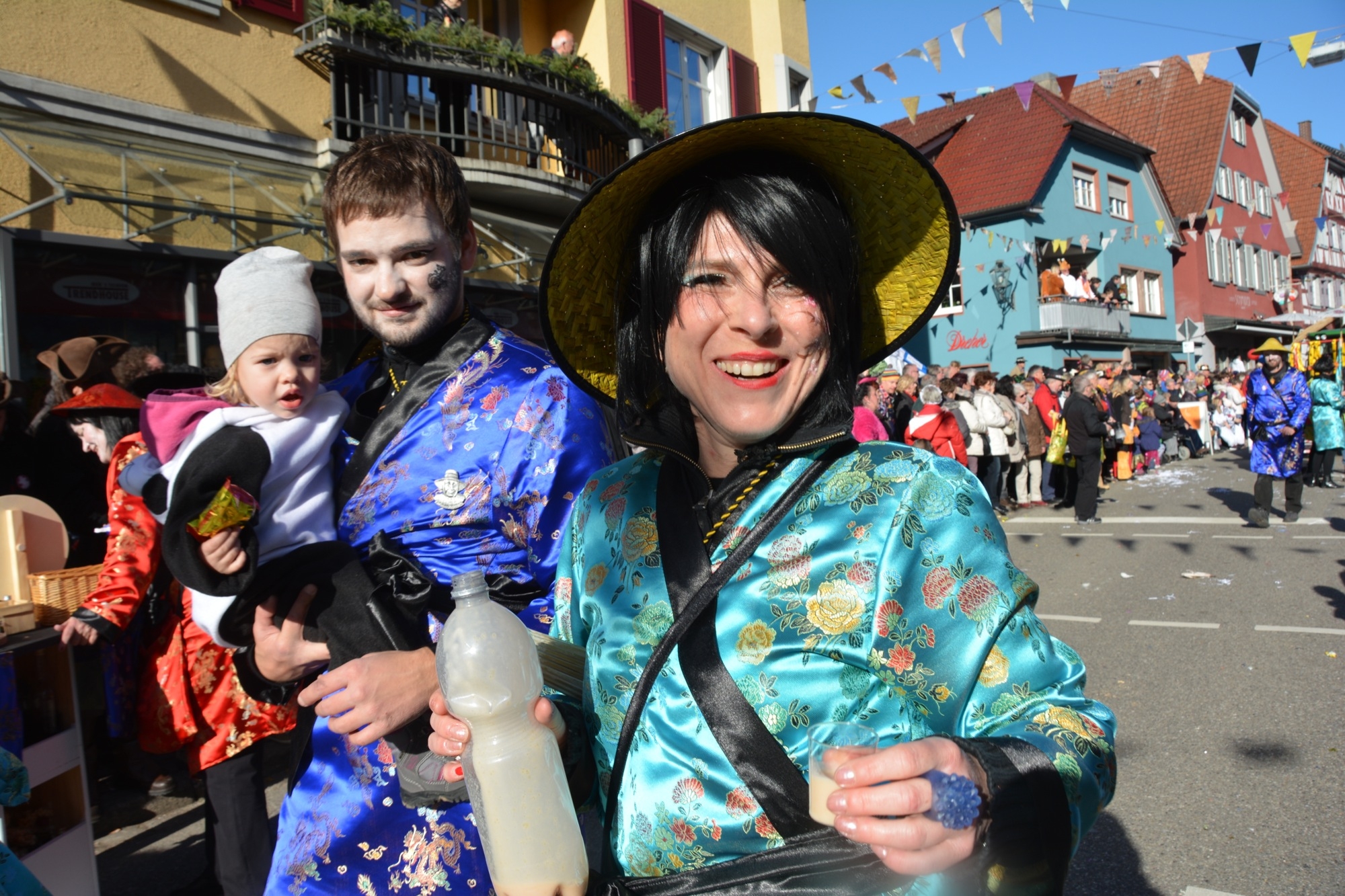 Der »Bruch« lud zum Affenzirkus ein. Als Affen und Bananen verkleidet tanzten durch die Straße, die »Bruch«-Kinder waren zum Teil auf Skate- und Hoverboards unterwegs. Überhaupt: Tiere waren das große Thema in diesem Umzug, denn auch das »Städtle« setzte das Motto tierisch um. Der Slogan »Im Städtle läuft de Bär om Gaukler hinterher« war Programm. Bei dieser Gruppe gab es tanzende Bären und Gaukler zu bestaunen.