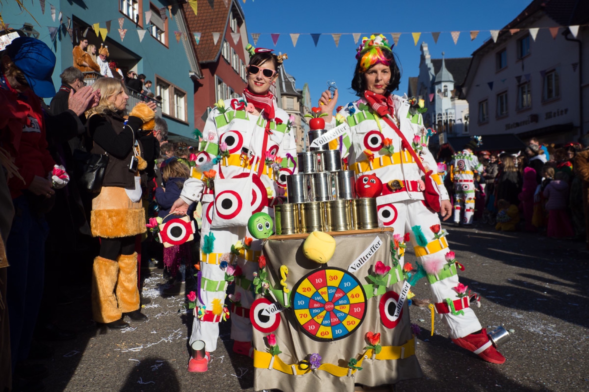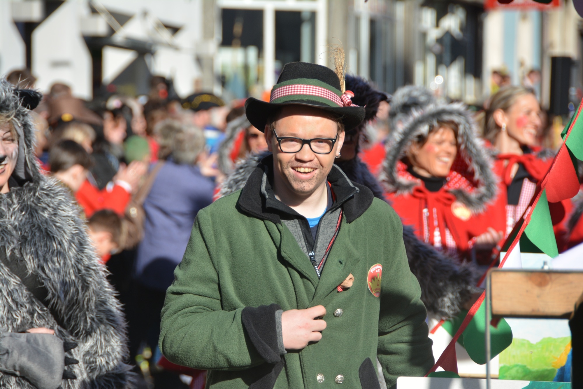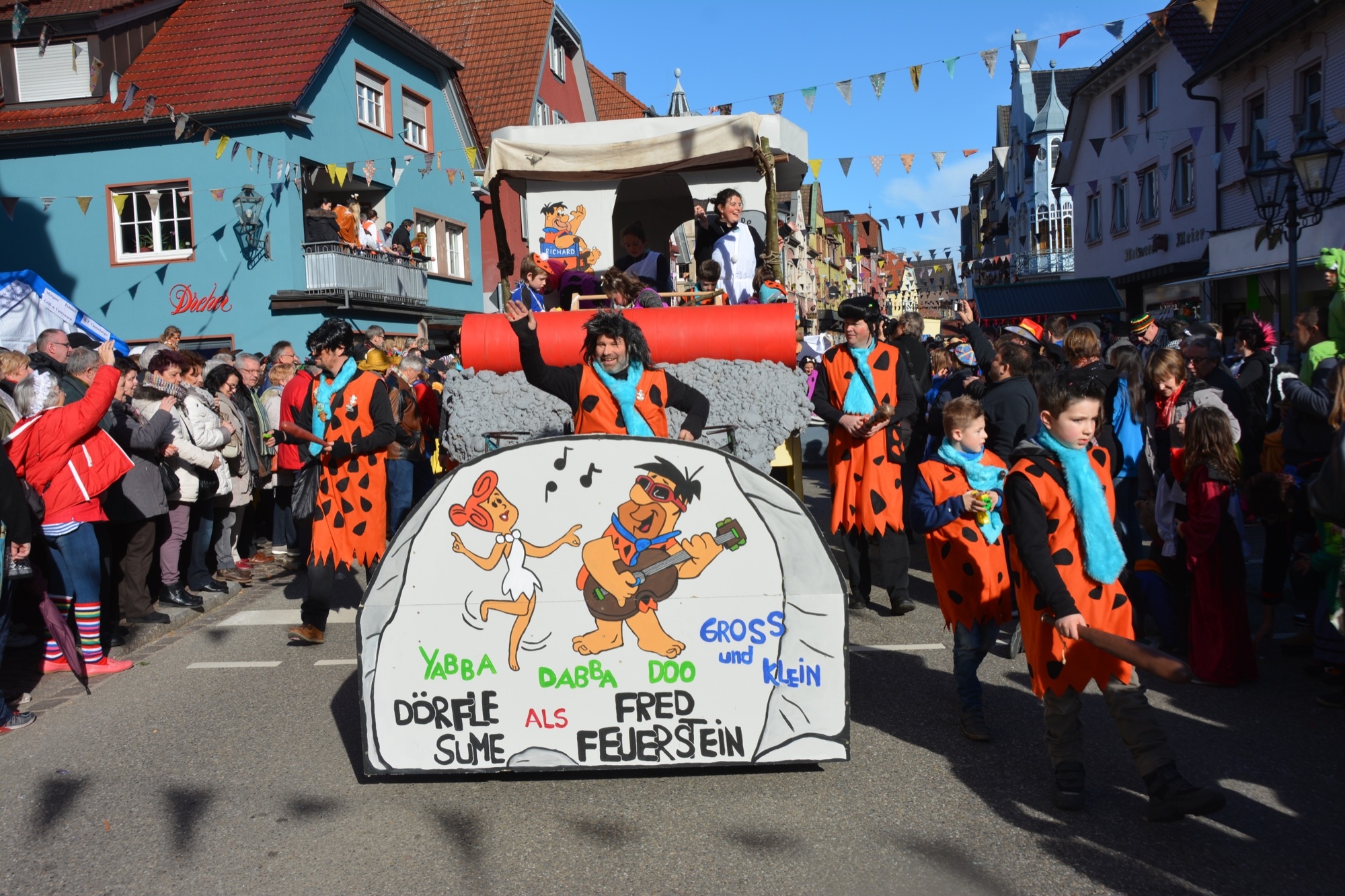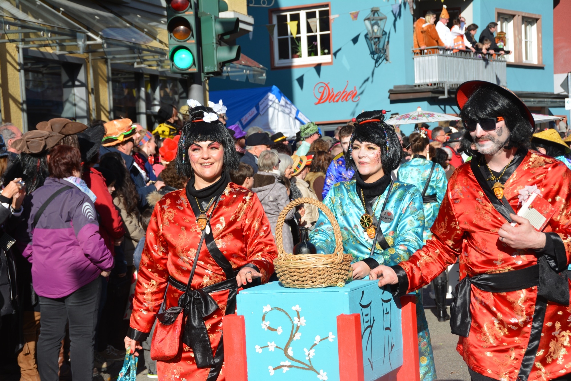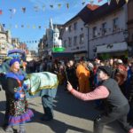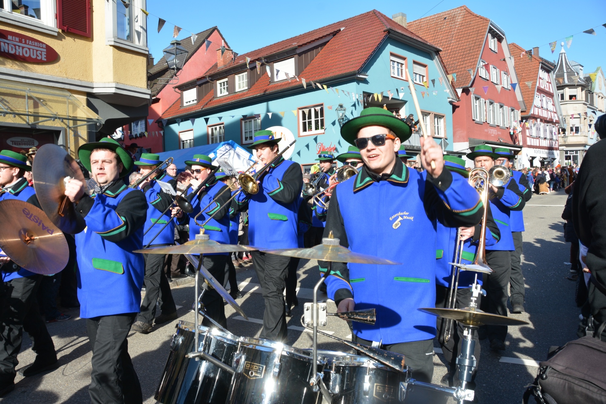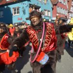 Der »Bruch« lud zum Affenzirkus ein. Als Affen und Bananen verkleidet tanzten durch die Straße, die »Bruch«-Kinder waren zum Teil auf Skate- und Hoverboards unterwegs. Überhaupt: Tiere waren das große Thema in diesem Umzug, denn auch das »Städtle« setzte das Motto tierisch um. Der Slogan »Im Städtle läuft de Bär om Gaukler hinterher« war Programm. Bei dieser Gruppe gab es tanzende Bären und Gaukler zu bestaunen.
