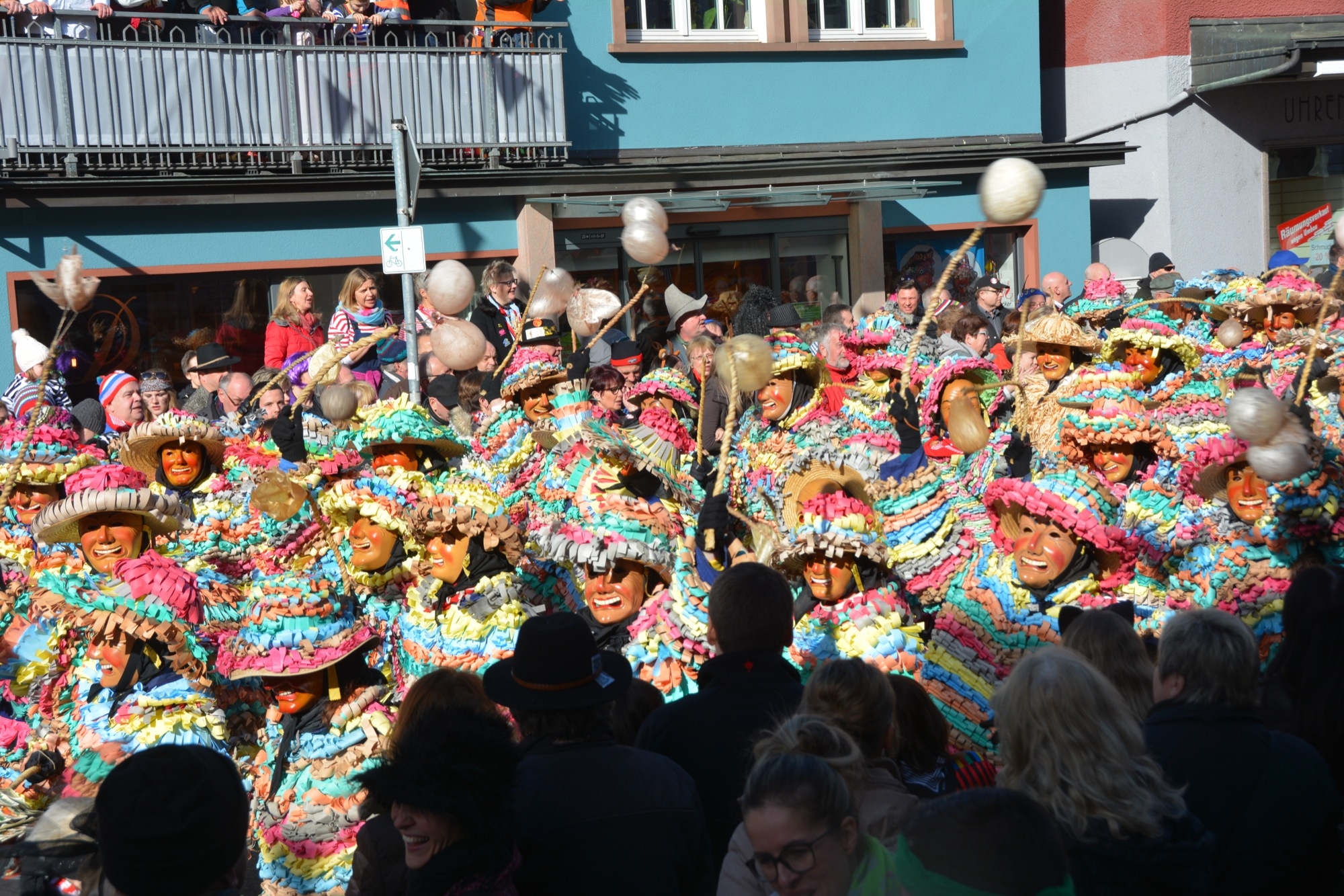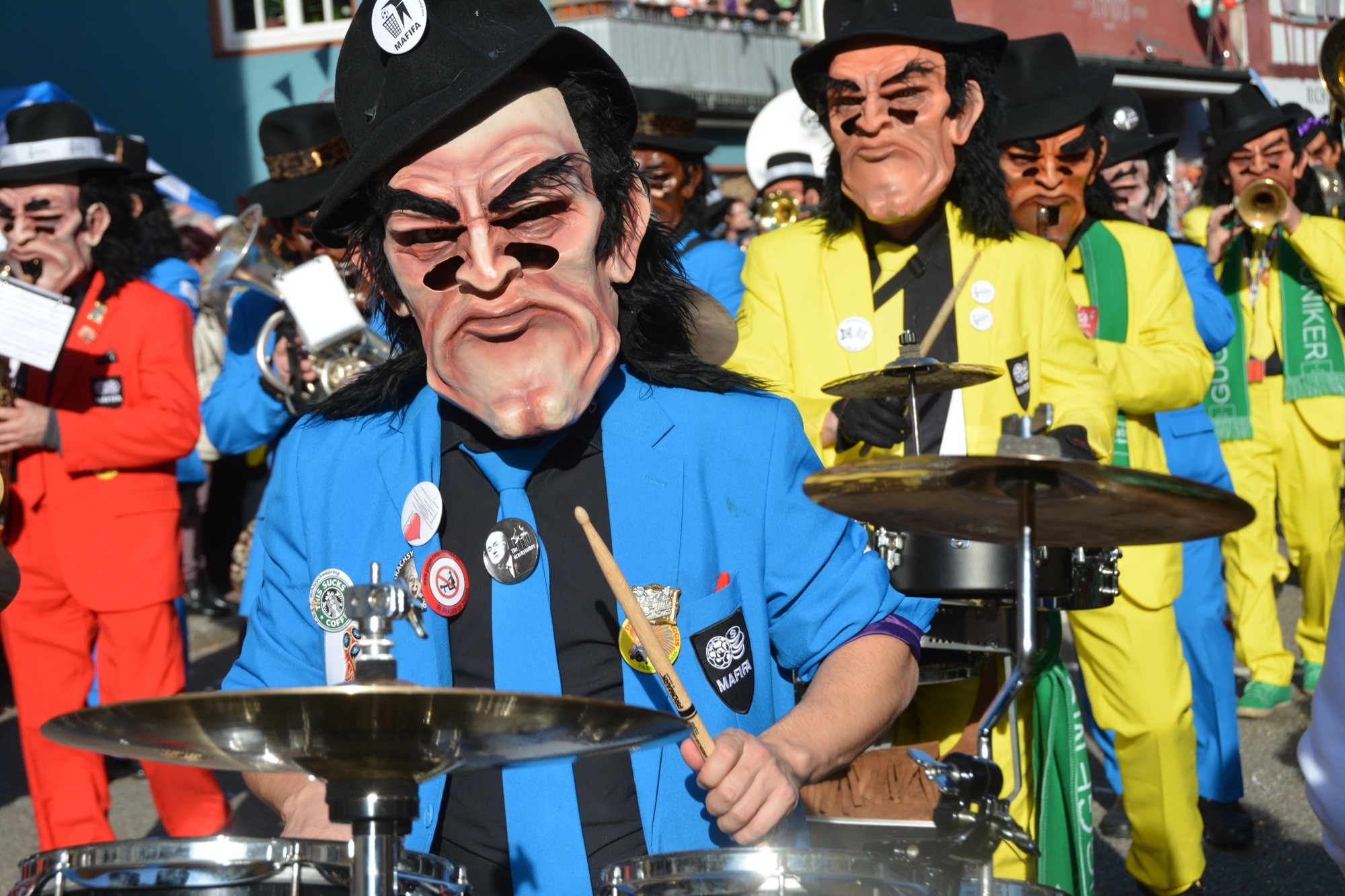 Die »großkopferten« Grachsymphoniker aus der Schweiz nahmen mit ihrer Kostümierung diesmal die Machenschaften des Fußball-Weltverbands aufs Korn. Bandleader »Sepp Blatter« dirigierte seine »Ma-FIFAs«, gut zu erkennen am Bestechungsgeld am Hut. Kurz wurde es rührig, als die Moderatoren Berthold Damm und Manfred Lehmann zum 10. Jubiläum der Guggenmusiker in Zell Medaillen der Basler verliehen bekamen. Viel Zeit blieb jedoch nicht. Es ging gleich weiter mit der nächsten Gruppe.