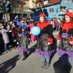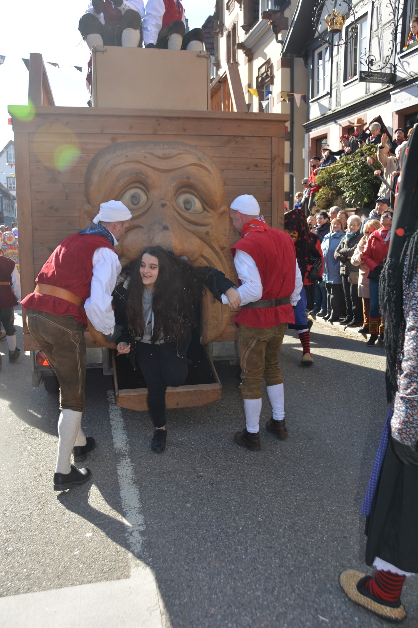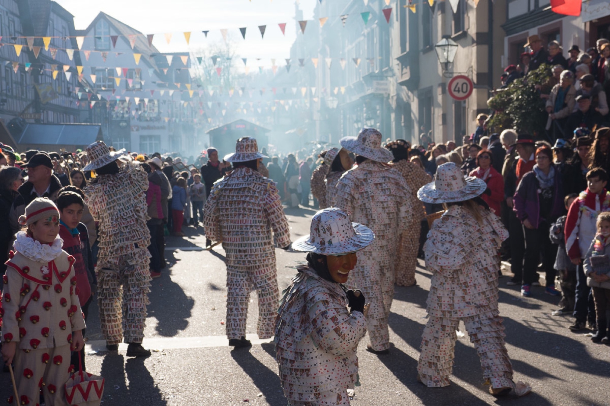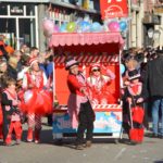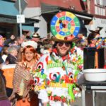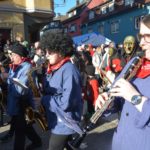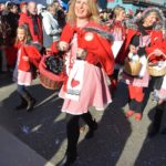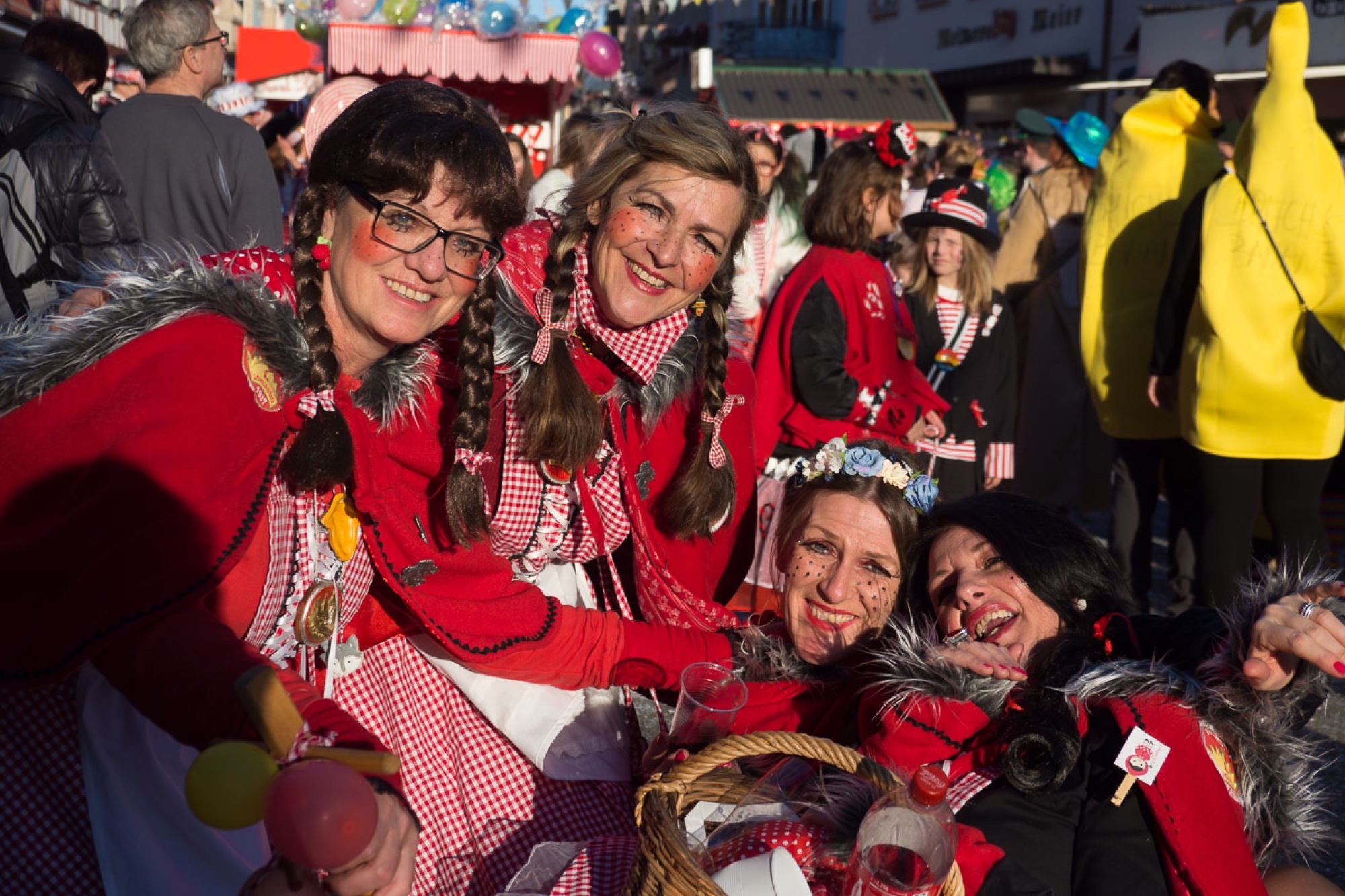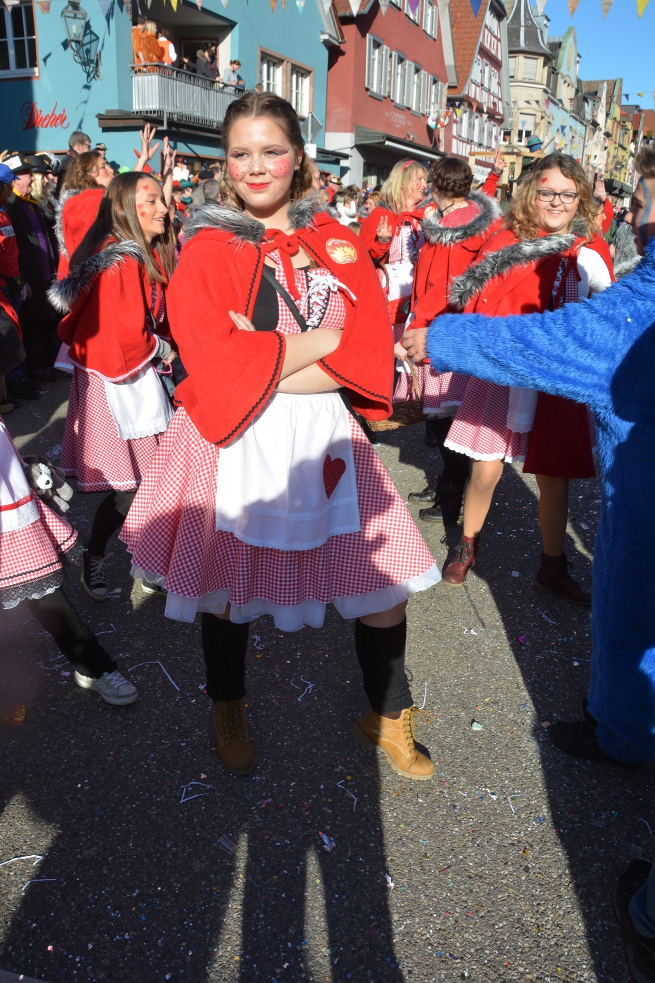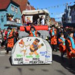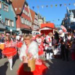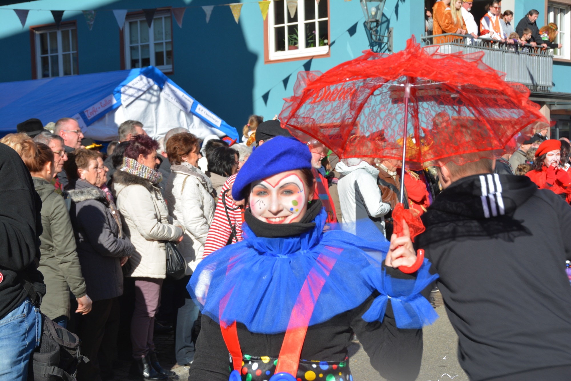 Als im Vorfeld das Thema der »Lohgass« bekannt wurde, gab es Verwirrung. Ihr Thema lautete »Rotkäppchen«. Wie die Gruppe das Märchen wohl auf Zirkus trimmen wollte? Der Dreh: Die Grundidee des Märchens wurde in eine Geschichte eingebettet, bei der ein Zirkus eine Rolle spielte. »80 Jahre Zigeunerkarusell. Rotkäppchen gastiert in Zell« hieß es schließlich, was die Moderatoren kommentieren ließ »Mancher Zirkus ist wie ein Märchen«. Kurz vor Schluss war es dann Zeit für etwas Süßes. Bei »Zuckerstange und Lollipop, hier kommt der Insel Candyshop« war die Umsetzung bereits im Motto enthalten: Es regnete Bonbons, die Outfits waren in Rot und Weiß gehalten – ganz wie Zuckerstangen. Den musikalischen Abschluss der ersten Runde markierte die Hombacher Musik mit einem kleinen Platzkonzert vor der Rathaus-Tribüne. Ihnen folgten die Eckwaldhexen, die mit ihrem rauchenden Hexenhaus auf Rädern für eingeschränkte Sicht im Veranstaltungsbereich sorgten. Kurz vor vier war dann der erste Durchlauf abgeschlossen und Runde Zwei konnte aus der Grabenstraße startend beginnen.