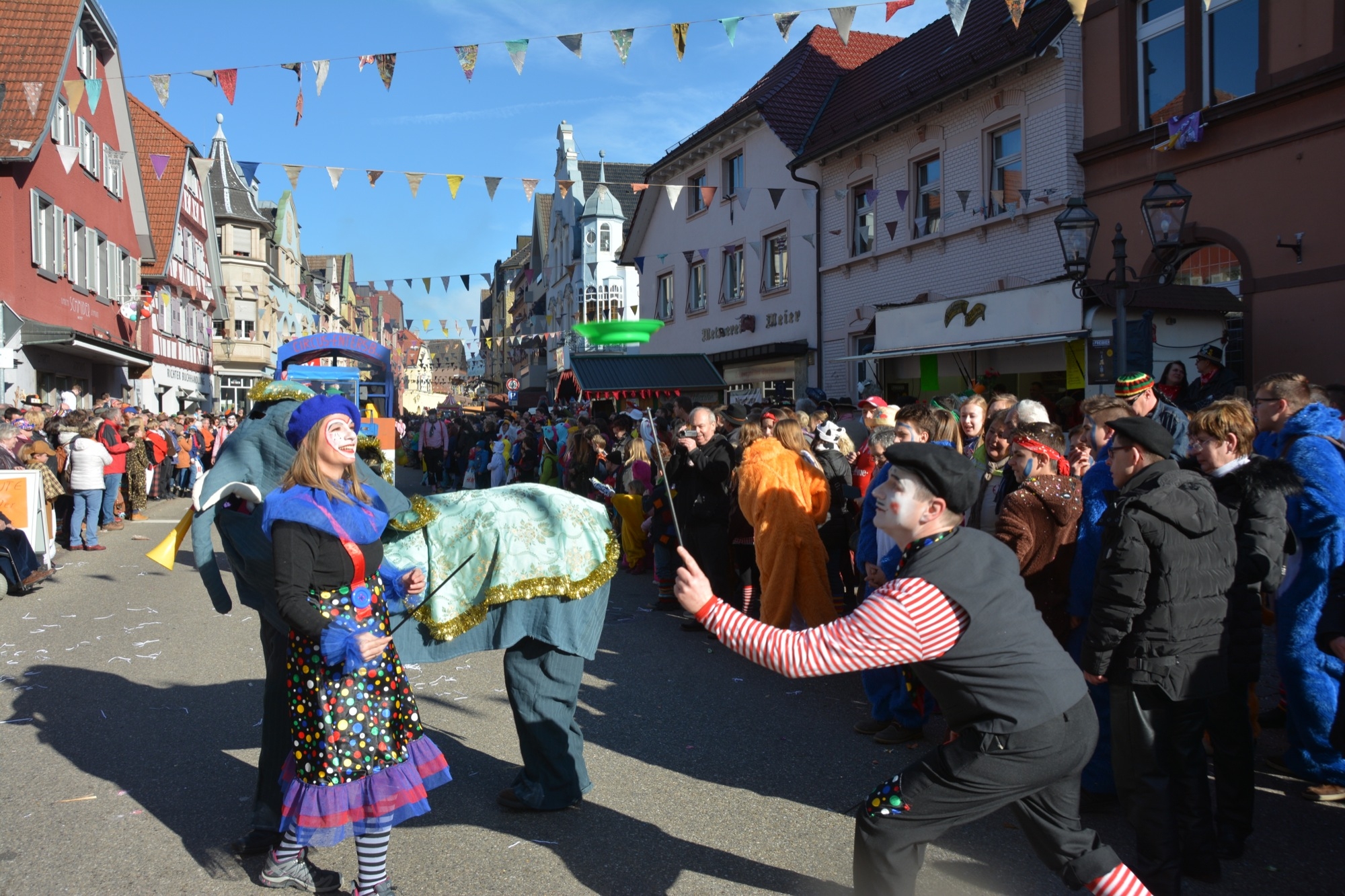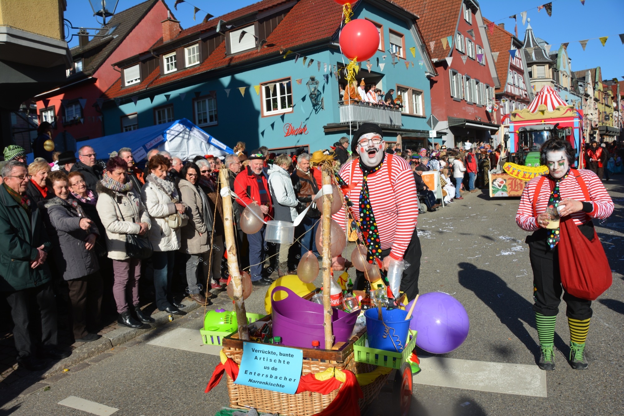 Gleich anschließend waren die »Großen« aus Entersbach dran. Unter dem Motto »De verrückte, bunte Artist us de Entersbacher Narrenkist« präsentierten sie als Jongleure, Stelzenläufer, Artisten und Akrobaten, Seilspringer, Ballonverkäufer und Seifenblasenbläser ihre Talente.
