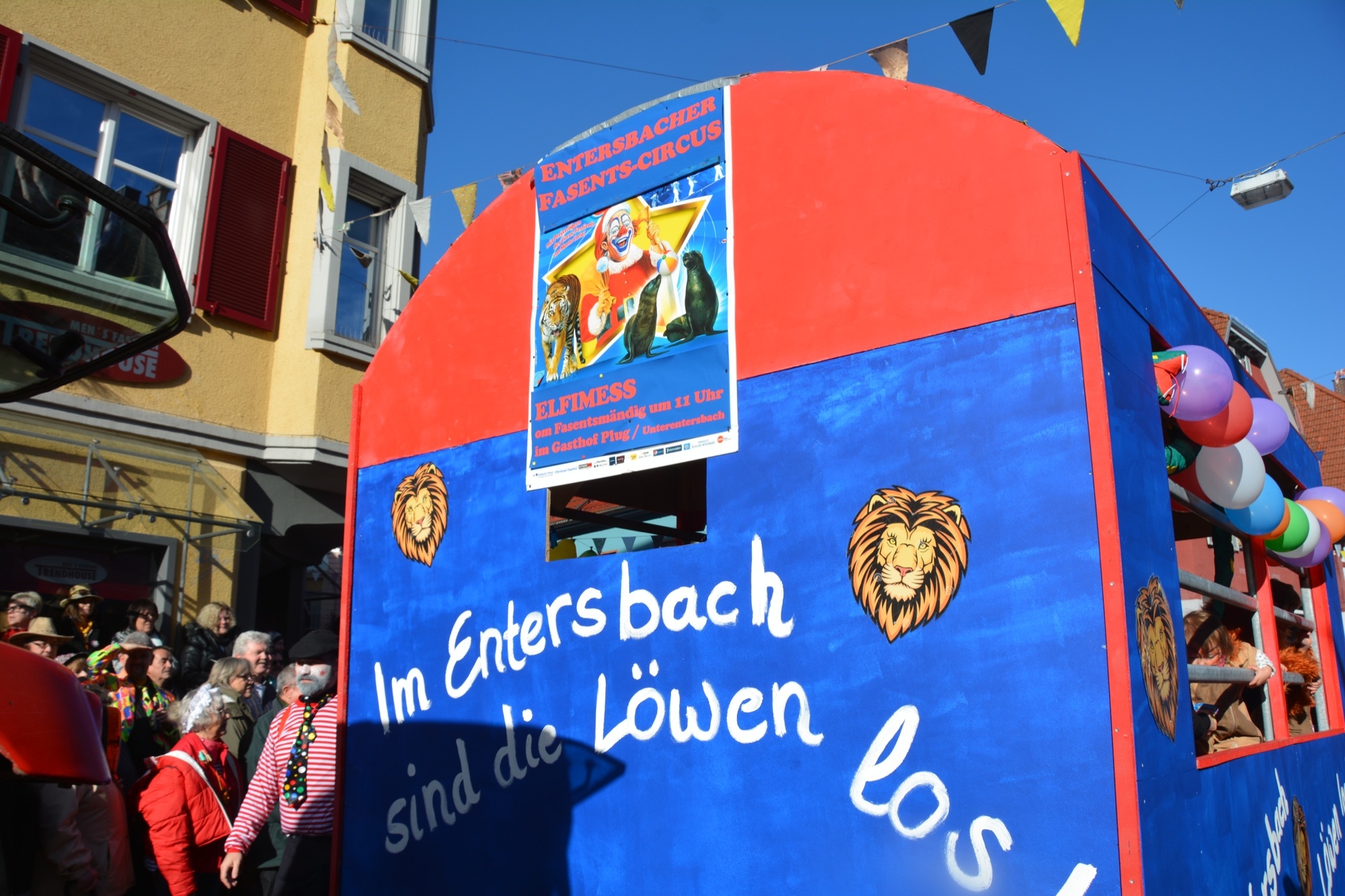 Es ist wohl so, wie man sich erzählt: Der liebe Gott muss ein Zeller sein. Am Morgen des Fasendsonntag war es noch kalt und neblig. Zur Erweckung des Narro klarte das Wetter auf, zum Start des Zugs strahlte dann sogar die Sonne vom Himmel. Das Motto in diesem Jahr lautete »Jahrmarkt, Zirkus, bunt und grell, Zeller Fasends-Karussell«.