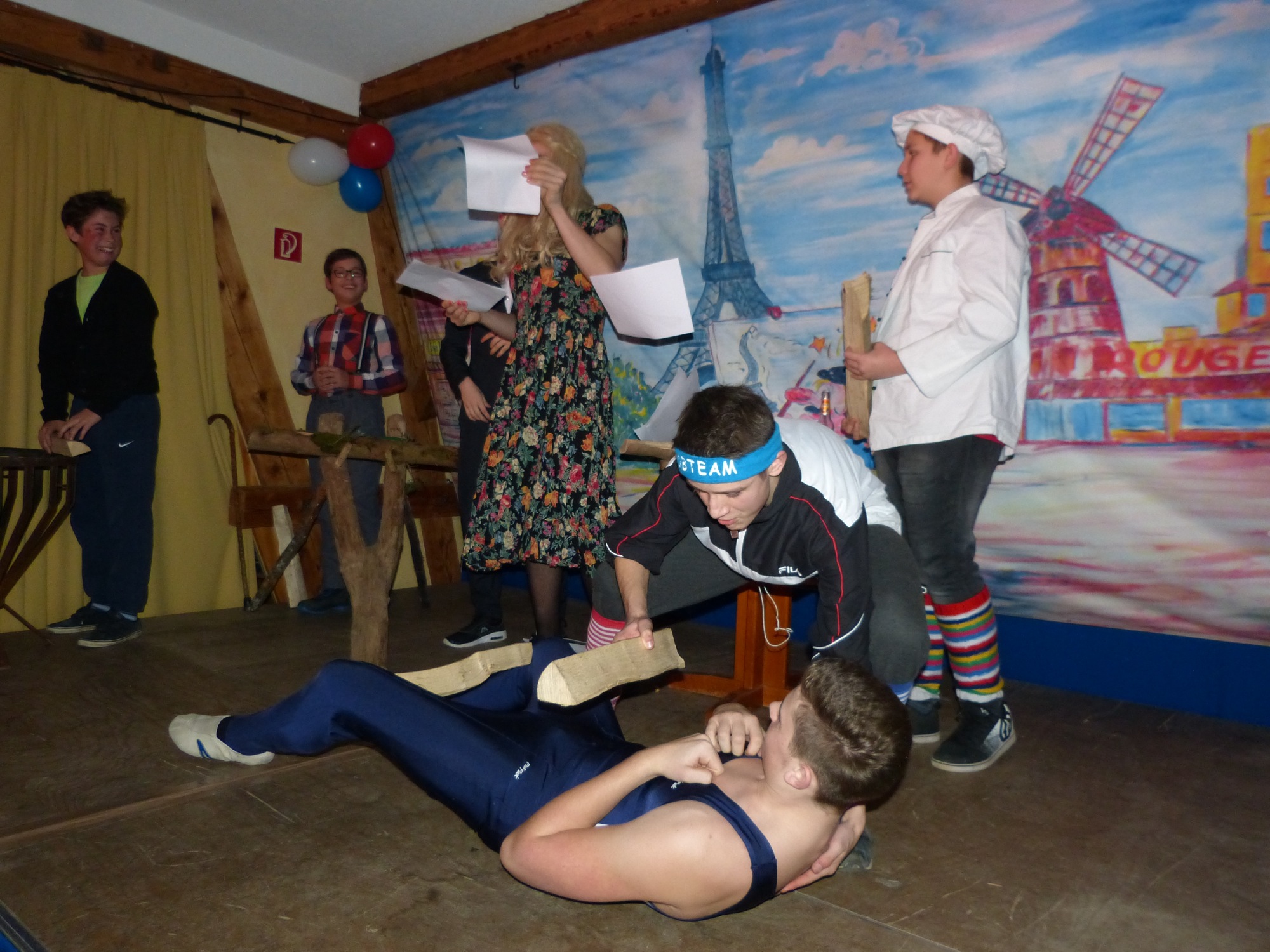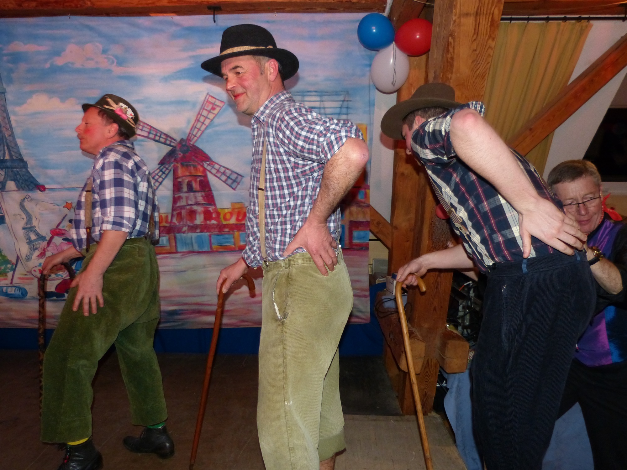 Im Rahmen eines Sieben-Punkte-Unterhaltungs-Programms betrat als erstes dann eine junge Holzhackerabteilung die Bühne und zeigte, wie man sich zu dem lustig-fetzigen Song »Ich und mein Holz« mit Holzscheiten körperlich zu ertüchtigen vermag.