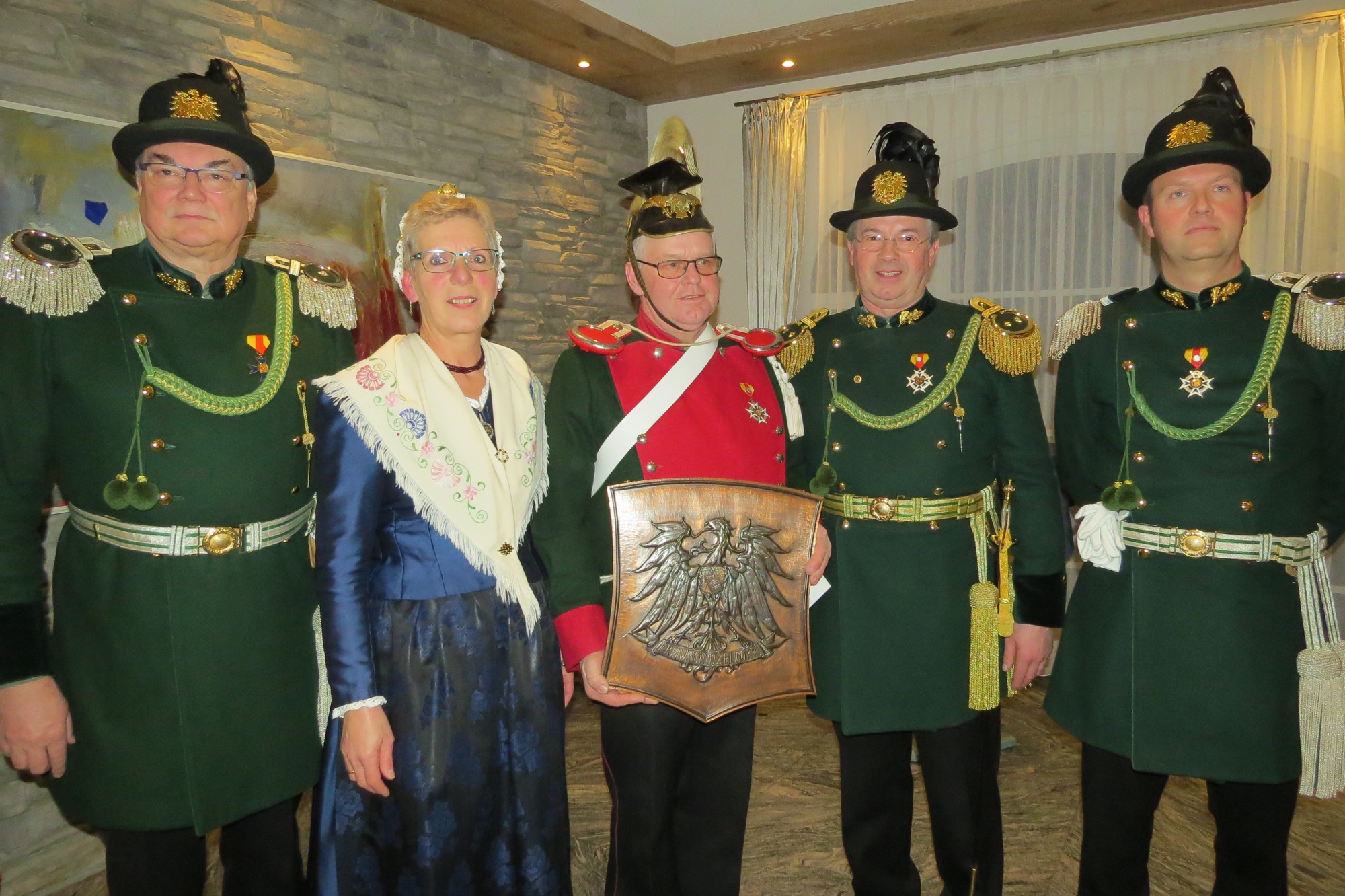 Gutmann betonte: »Dafür sage ich Dir Fridolin und Deinen Verwandten ein herzliches Vergelt’s Gott von der ganzen Bürgerwehr, auch für das gute Miteinander all die Jahre!« Aufgrund seiner großen Verdienste für die Zeller Bürgerwehr überreichte Gutmann ihm den großen Bürgerwehr-Adler und einen Gutschein.